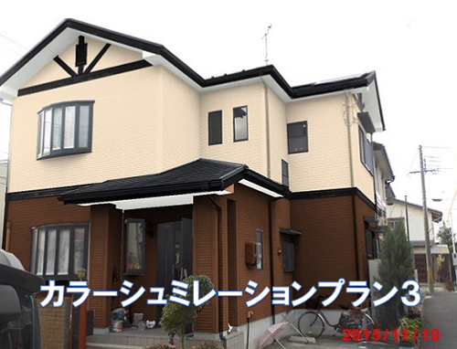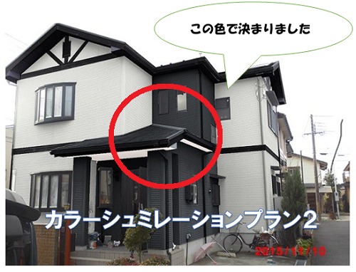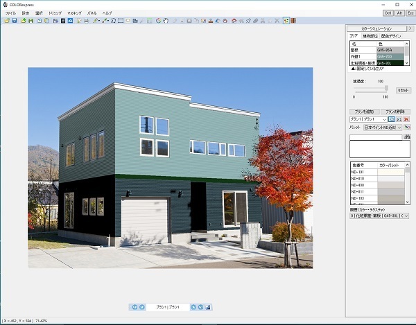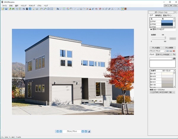 左の写真が実際のお家の色です。シミュレーションソフトで右のように色を変えてお見せすることができます。