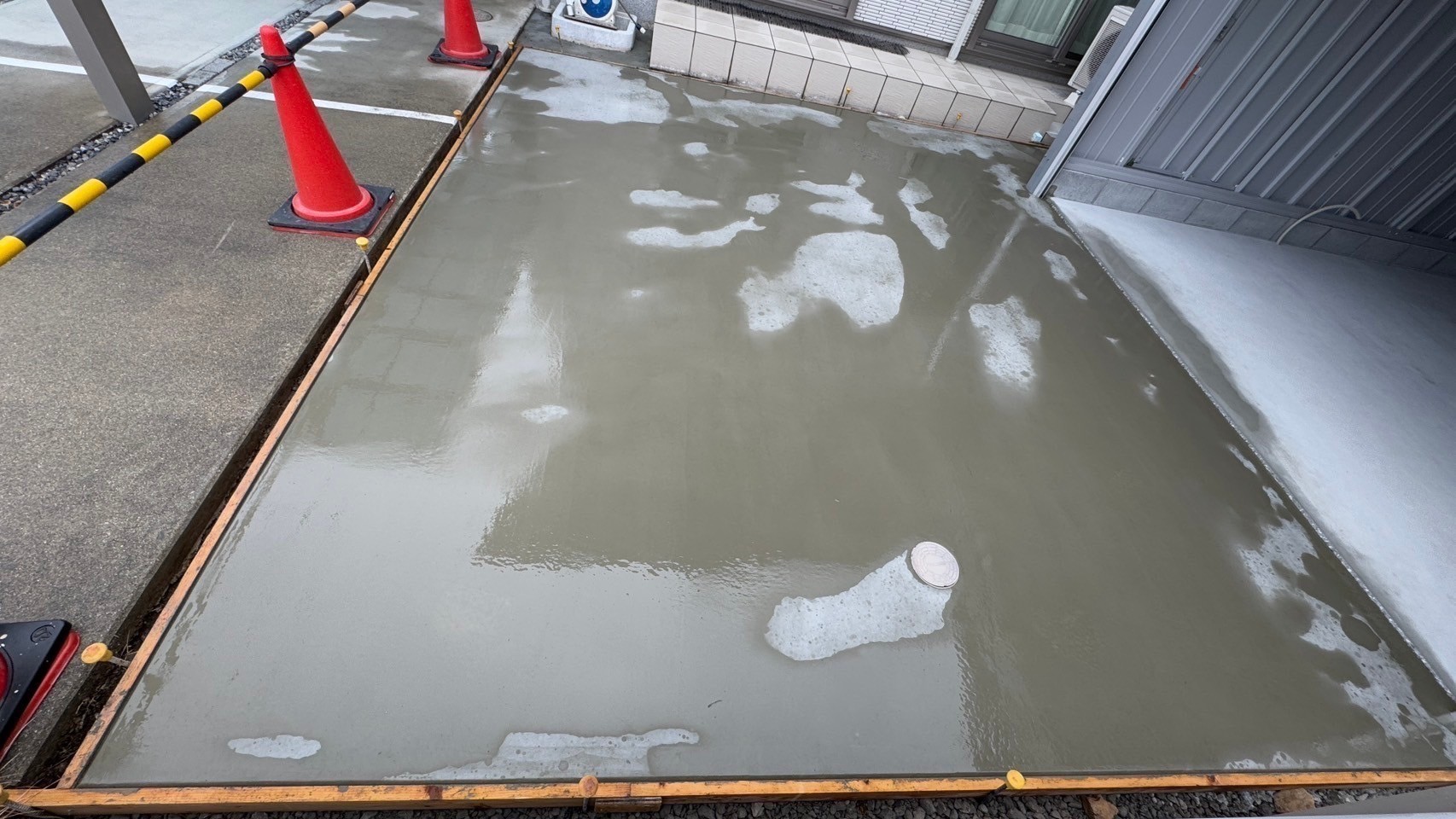 本日、昨日打設した土間コンクリートを間違えて人か、動物が入って足跡が付いてないか確認をしにいきました。大丈夫でした。(^^)土間が乾いてからまた次の作業をしていきます。引き続き宜しくお願い致します。
