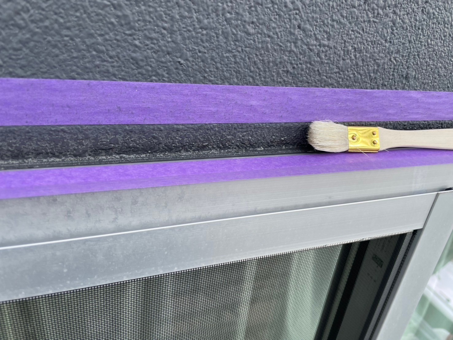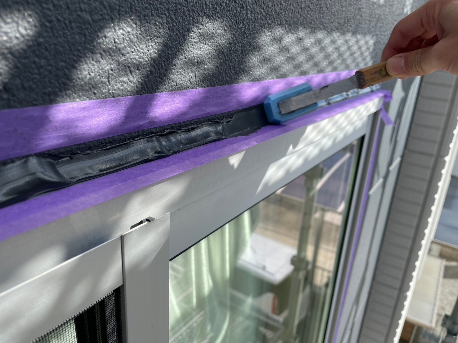 本日の作業は、木造建の開口部のサッシの隅からパワーボードに向かってクラックが走っていましたので開口のサッシ周りを先に増し打ち工事をしました。後日、クラックの処理をしっかり埋めてからアクセント部の塗装工事をしていきます。引き続き宜しくお願い致します。
