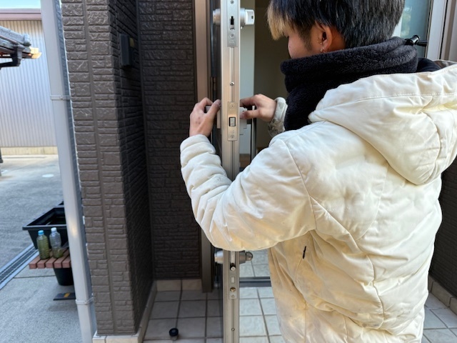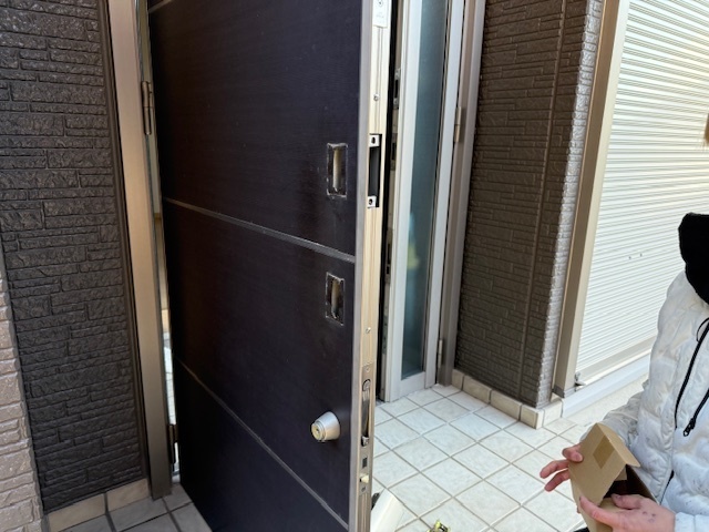 玄関のラッチ交換をさせて頂きました。玄関ドアもクローザーやラッチなど消耗部品が10年以上経過するとどうしても傷んで来ます。定期的にメンテナンスすることにより玄関ドアも長持ちします。Kさまいつもありがとうございます。今後ともよろしくお願いします。