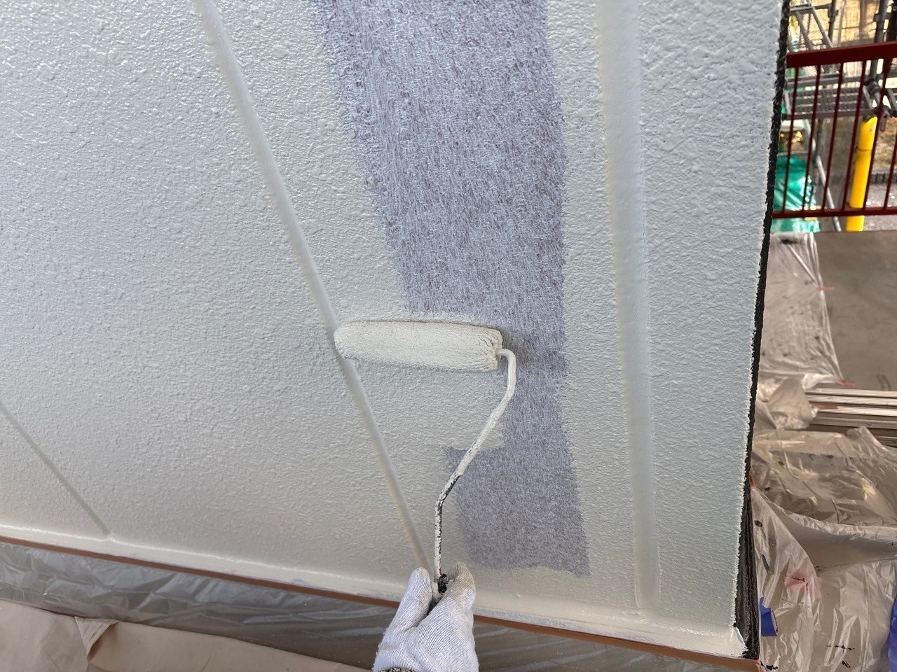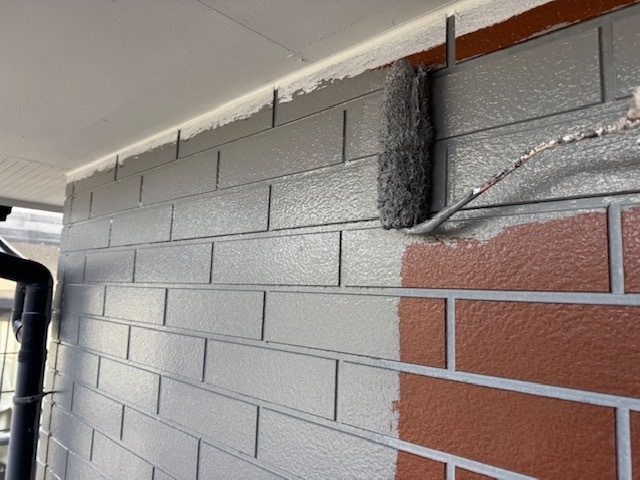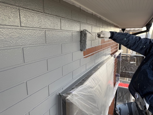 本日の作業は、外壁部2回目塗り(中塗り)作業をしております。引き続き宜しくお願い致します。