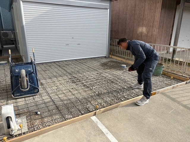 明日、土間コンクリート打設をしますので本日は、型枠、メッシュ敷き、レベル墨出し工事をしました。引き続き宜しくお願い致します。