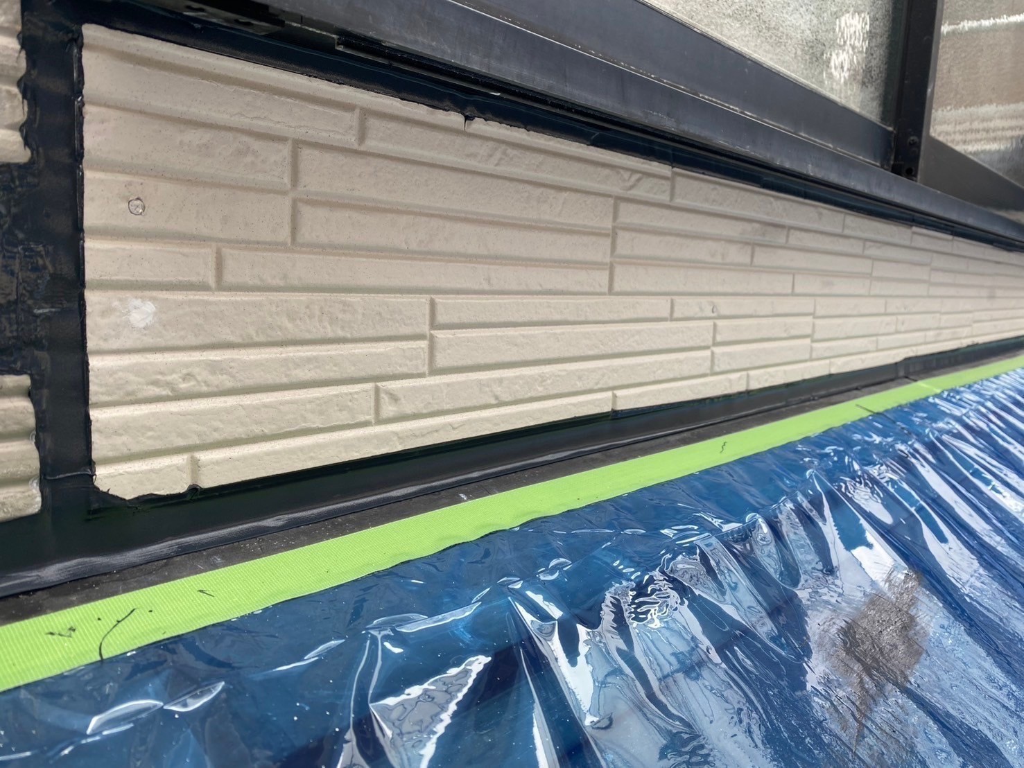 本日の作業は、外壁サイディングの破損している箇所を張り替えした目地部のシール打設工事と一部サイディング表面がめくれてる箇所をサイディングボード補修専用の速乾パテで処理しました。明日も引き続き宜しくお願い致します。