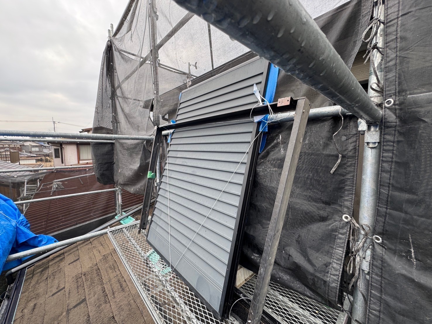外壁サイディングが老朽化により腐食している箇所があり、張り替えるのに雨戸が干渉するので先に取り外し作業を致しました。引き続き宜しくお願い致します。