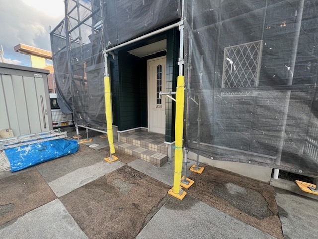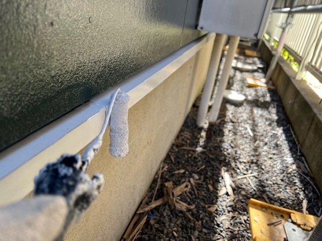 本日の工事は付帯部の仕上げとライン出しタッチアップをしました。明日はスリムダクト交換工事を行います。水曜日に検査を行い金曜日に足場解体予定となります。引き続き宜しくお願いします。またアップします。