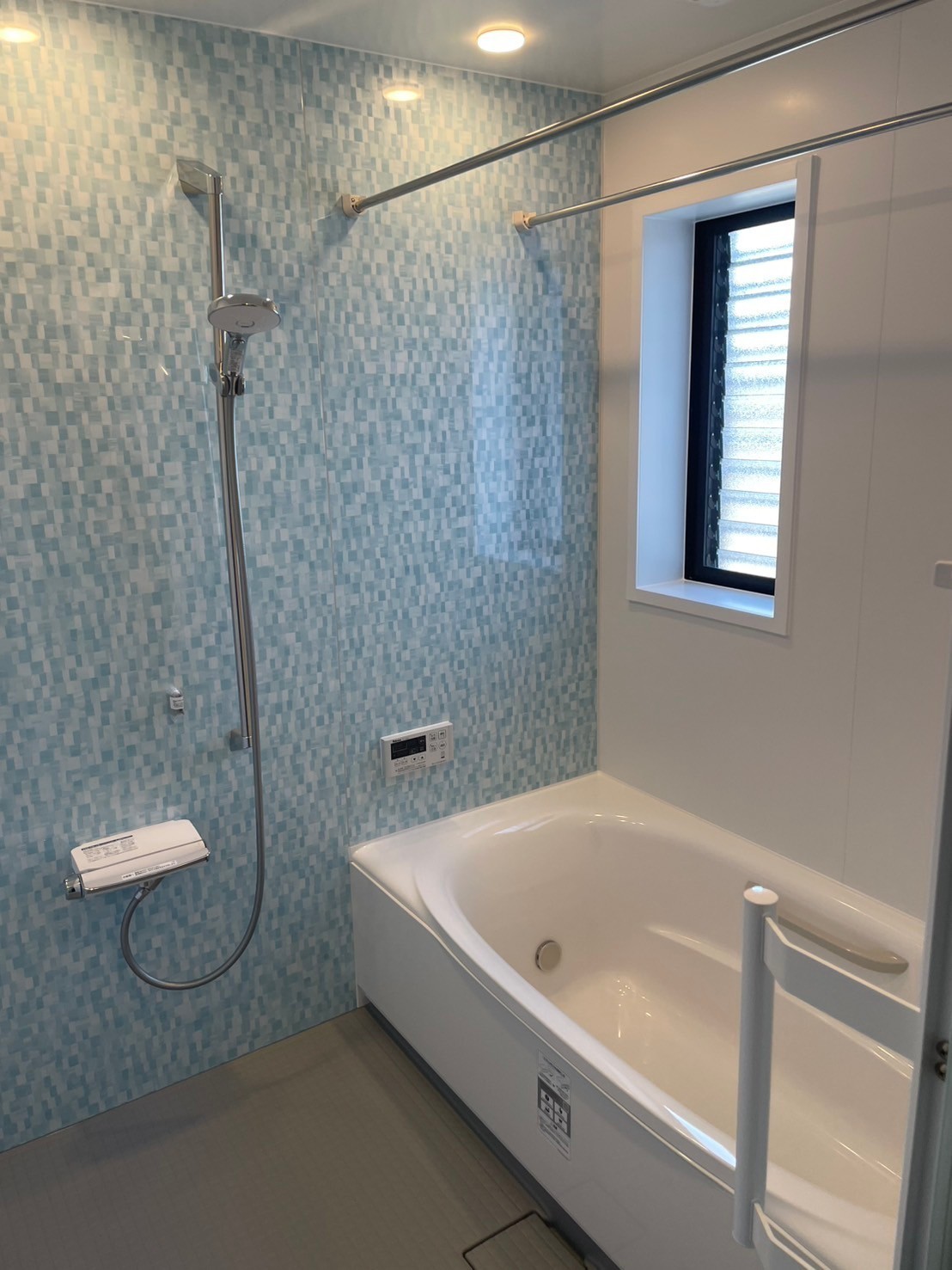 本日の作業は午前中にお風呂の試運転と工事に干渉した浴槽ドアを取り付けた1面のクロスまたは、脱衣所のクッションフロアーを午後から貼って工事は完了致しました。ご家族様、夕方から新品の浴槽に浸かってリフレッシュしてくださいね^^ありがとうございました。お家のことなら何でもアイホームにお任せ下さいね^^