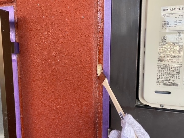 本日からALCの外壁部を養生作業してプライマーを刷毛で塗りオートンイクシードで増打していきます。