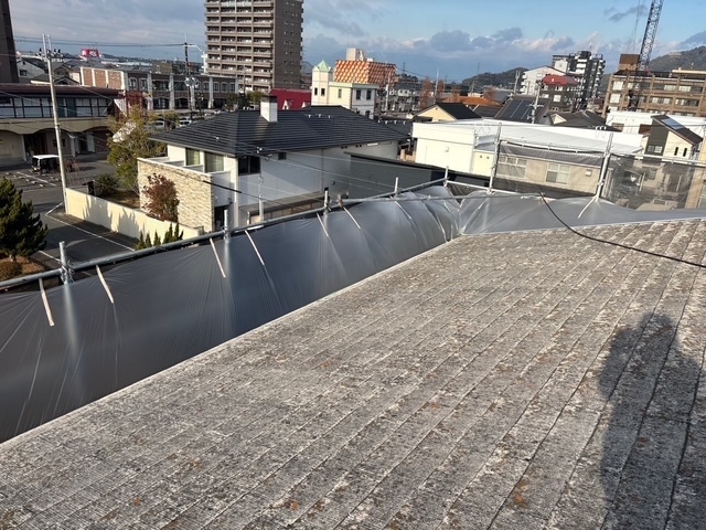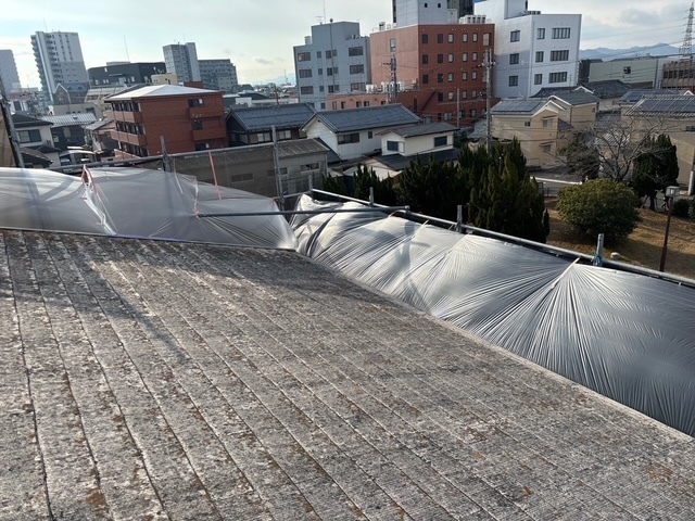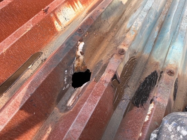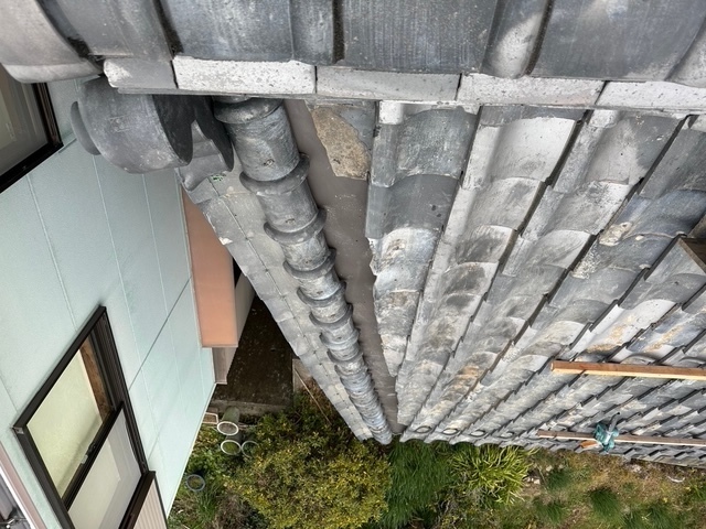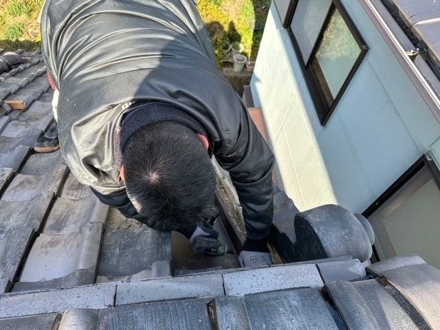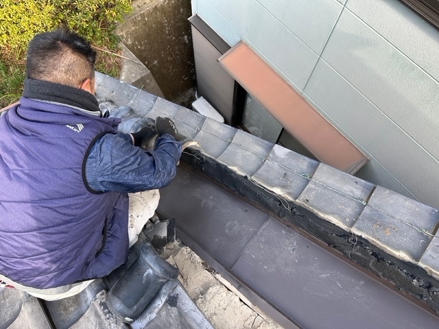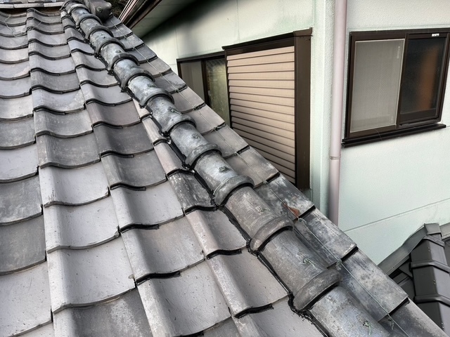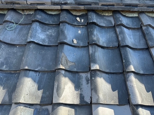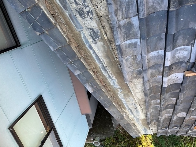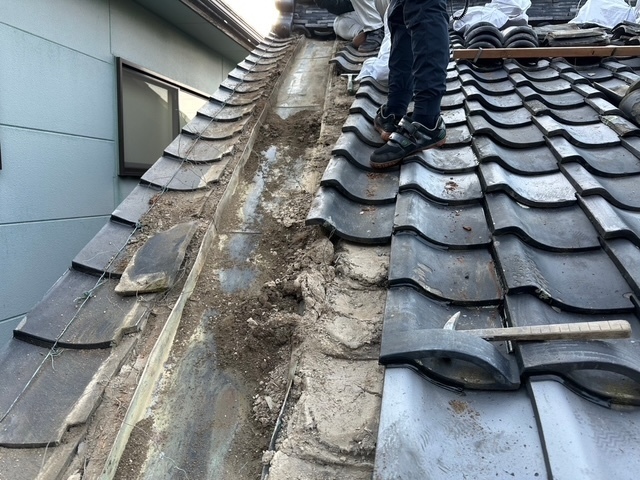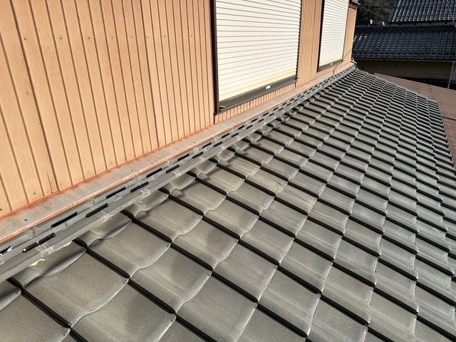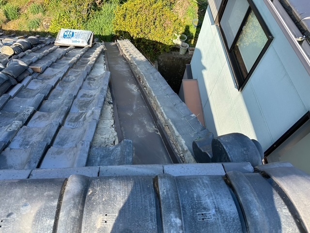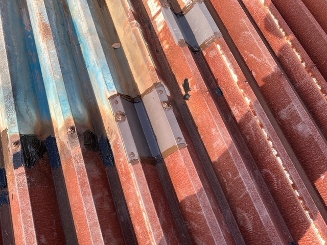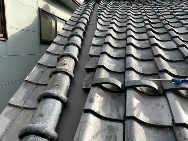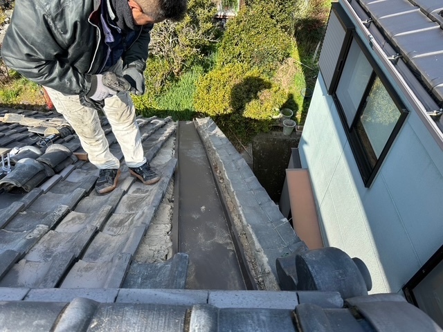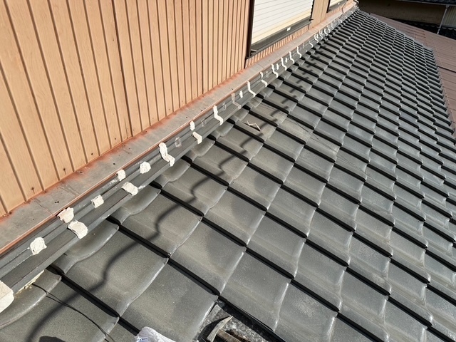 本日の作業は大屋根の谷板金の取付工事と地瓦の伏せ替え、紐丸の積み替え地瓦の差し替え折板ルーフの穴が見えている箇所を平板板金で修繕しました。サービスで別棟の下屋根の壁ノシのカナコを撤去してのし瓦が先々落ちないようにシールド工事しておきましたよ。ありがとうございました。家のことなら何でもアイホームにお任せ下さい。