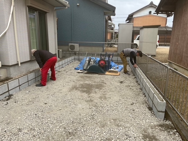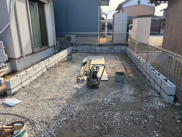 本日はイナバガレージを新設置する箇所のブロック基礎工事をしました。引き続き宜しくお願いします。またアップします。