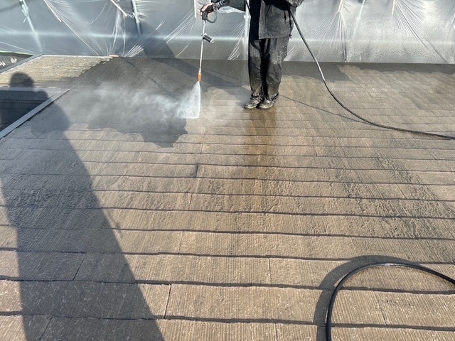 本日はマンションの屋根、外壁の高圧洗浄を致しました。