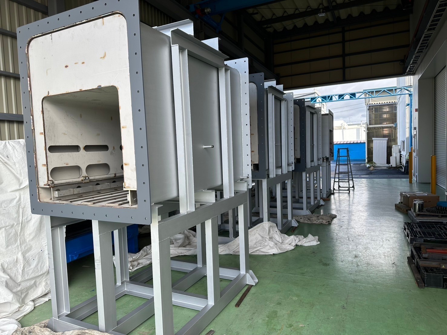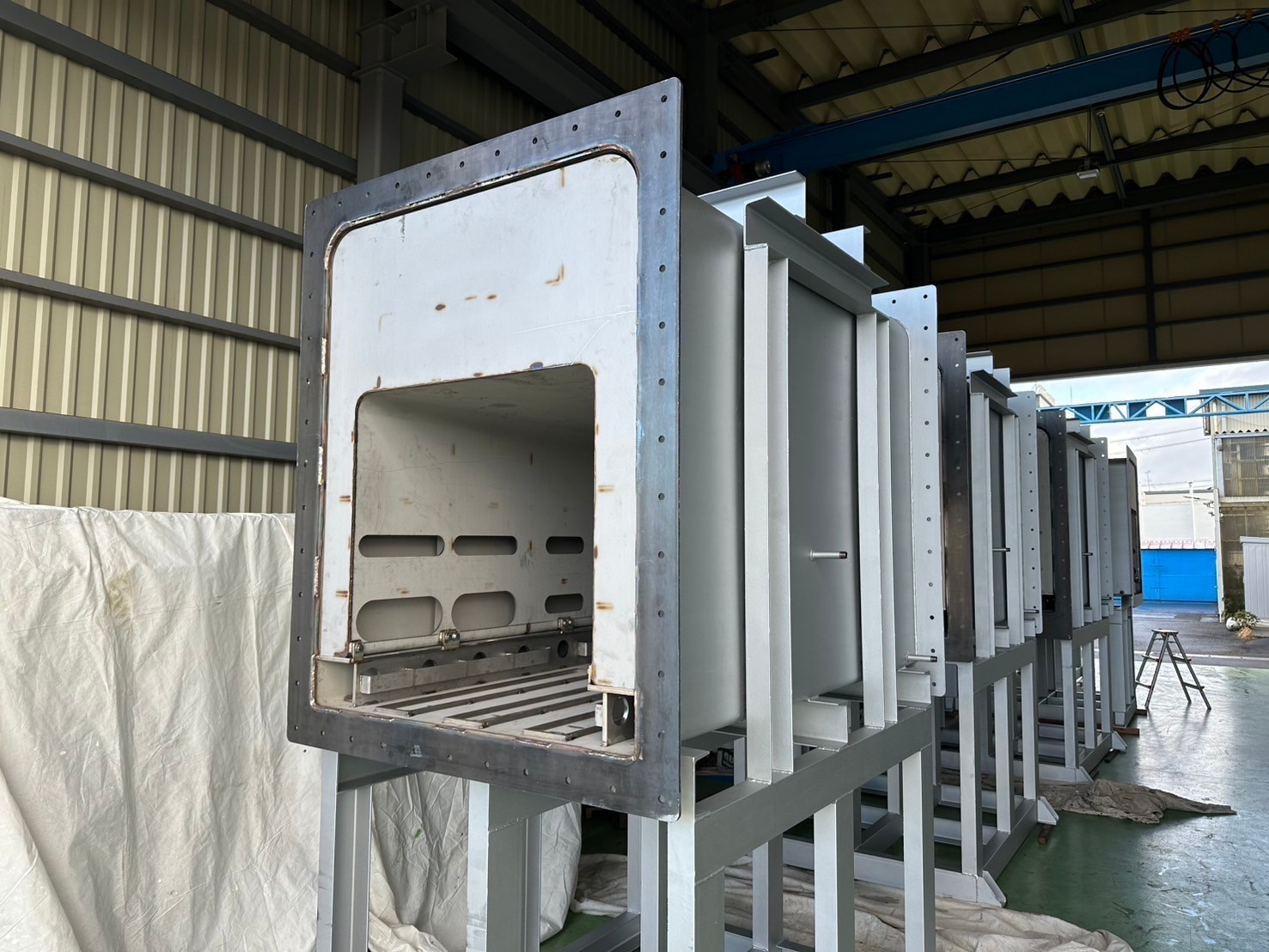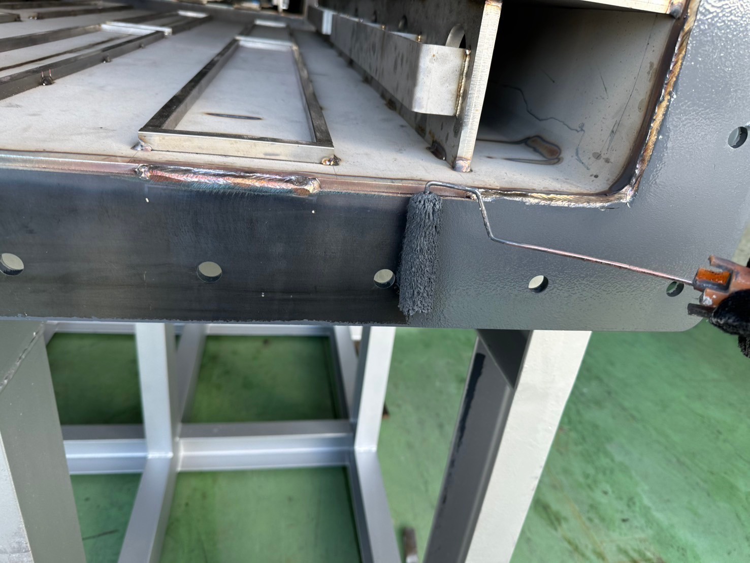 本日は昨日工場内で仕上げた冷却庫ですが外に出して点検したらタッチアップや塗装ムラが多くありましたので今日仕上げることが出来なかったのとまた追加で木曜日に出荷したいので塗装して欲しいとご依頼頂きましたので頑張ります(^_^)引き続き宜しくお願い致します。