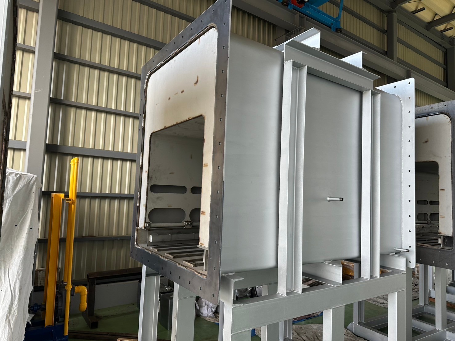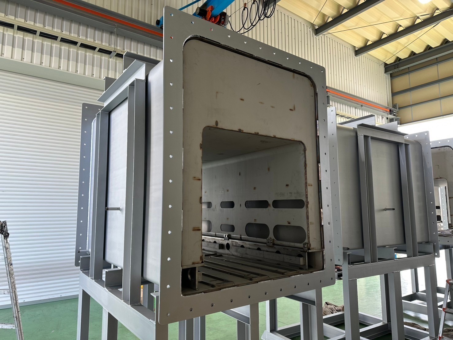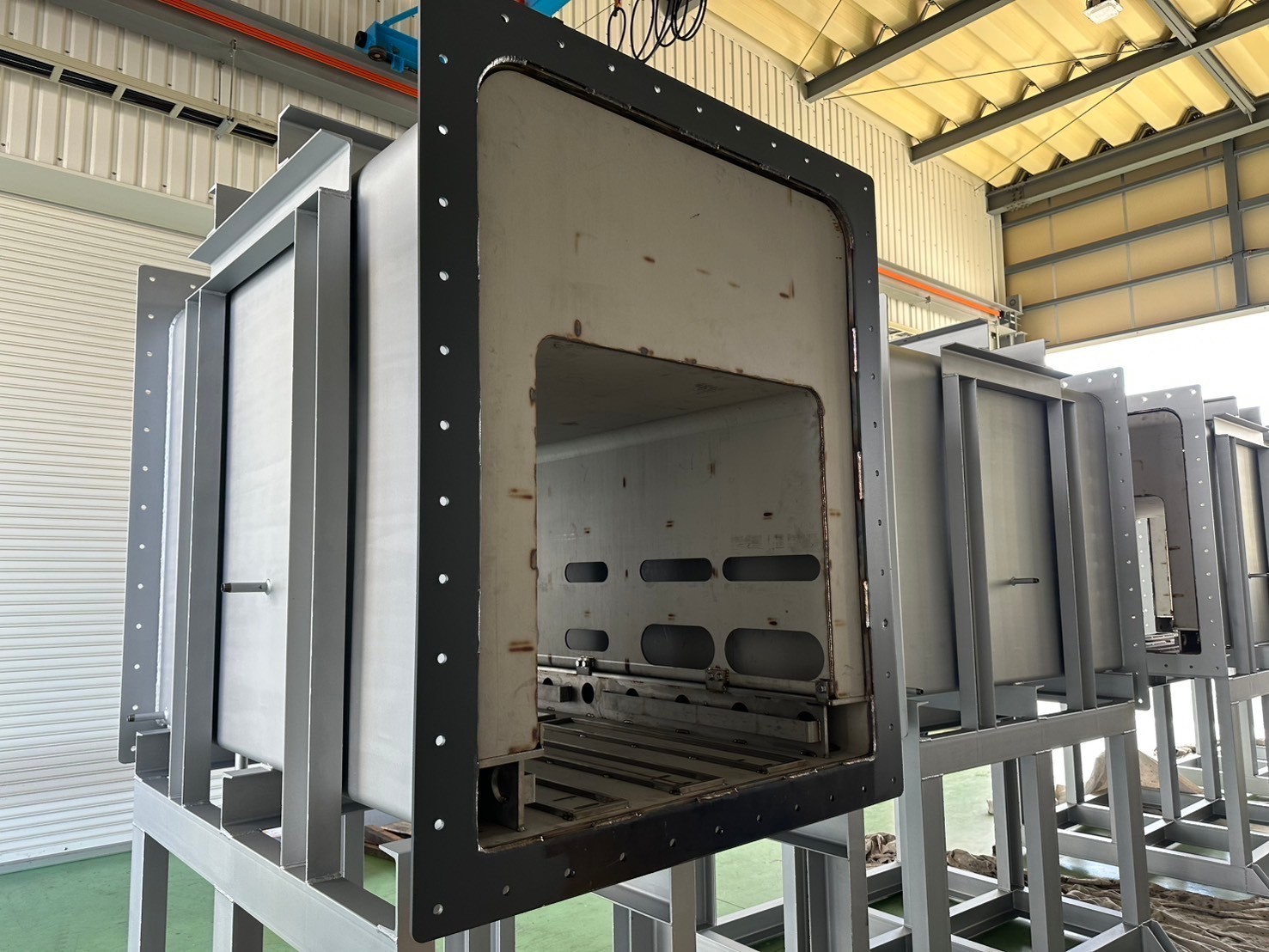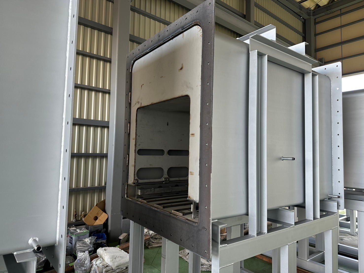 本日は昨日工場内で仕上げた冷却庫ですが外に出して点検したらタッチアップや塗装ムラが多くありましたので今日仕上げることが出来なかったのとまた追加で木曜日に出荷したいので塗装して欲しいとご依頼頂きましたので頑張ります(^_^)引き続き宜しくお願い致します。