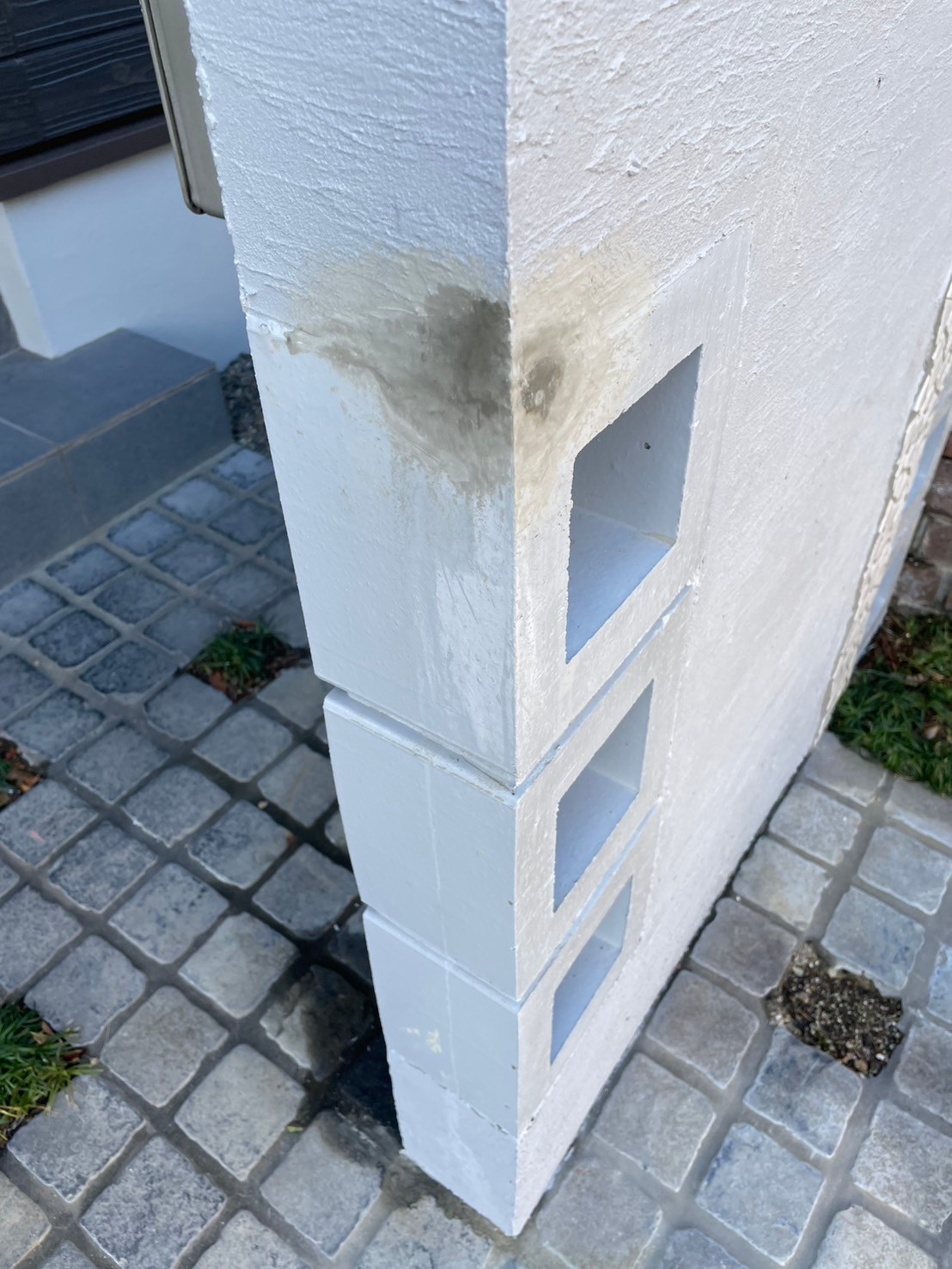 ブロック塀から雨水がずっと垂れてきていつまで待っても止まらないので必殺技を使い今日塗装しました!塀から雨水が出るのは、良く起こることなんですがブロック塀を施工した業者が後のことを考えてない施工ですよね(^^;)必殺技は止水セメントを塗り水をカットして塗装を致しました。なかなか手強かったです(^^;)またどこからか雨水が出てくる可能性も無きにしろあらずなので何かあればまたご相談に乗りますのでお気軽にお声がけくださいね(^_^)基礎ガード塗装も気にされてる箇所はサービスで塗っておきましたよ。お家の外壁はフッ素で塗ったので本間に綺麗になりましたね(^_^)長い事かかりましたがありがとうございました。お家のことなら何でもアイホームにお任せ下さい。