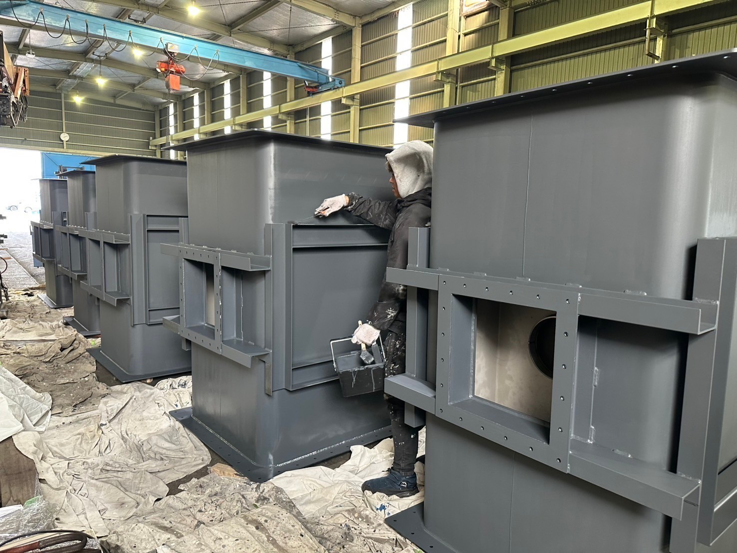 昨日残りの5台の冷却庫が全部作られたので今日から前回と作業流れは、一緒ですが耐火塗装をしていきます。来週の木曜日が出荷らしいので、それまでにきっちり仕上げますね^^引き続き宜しくお願い致します。