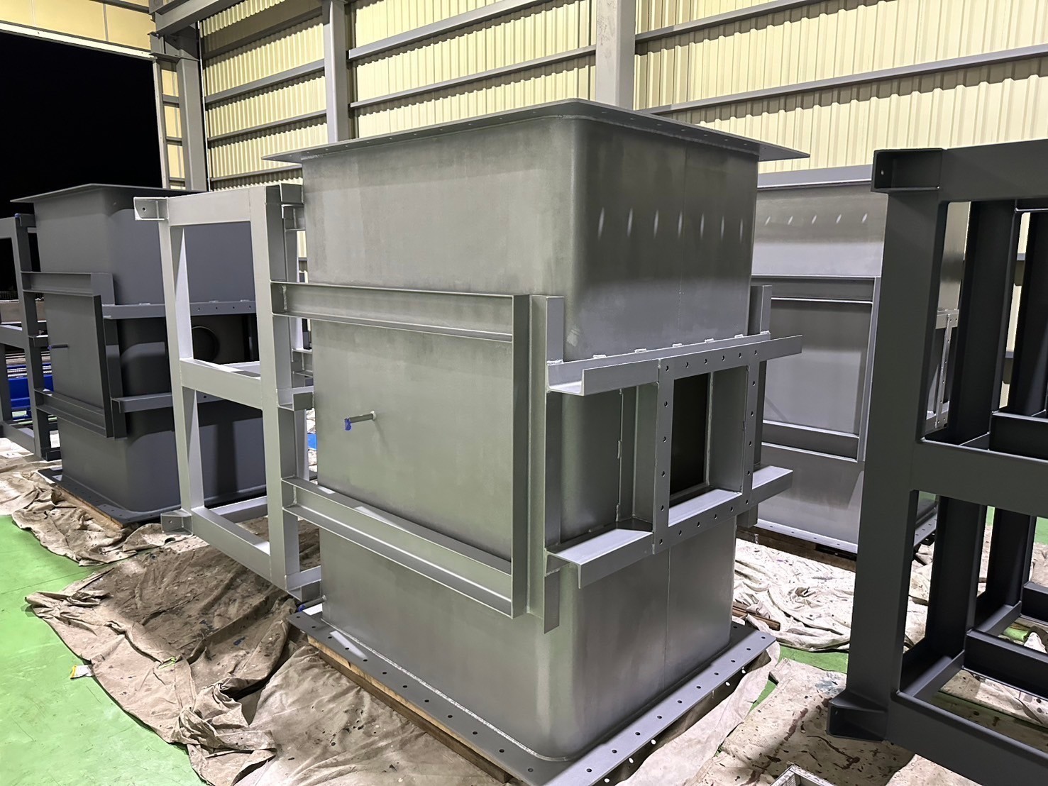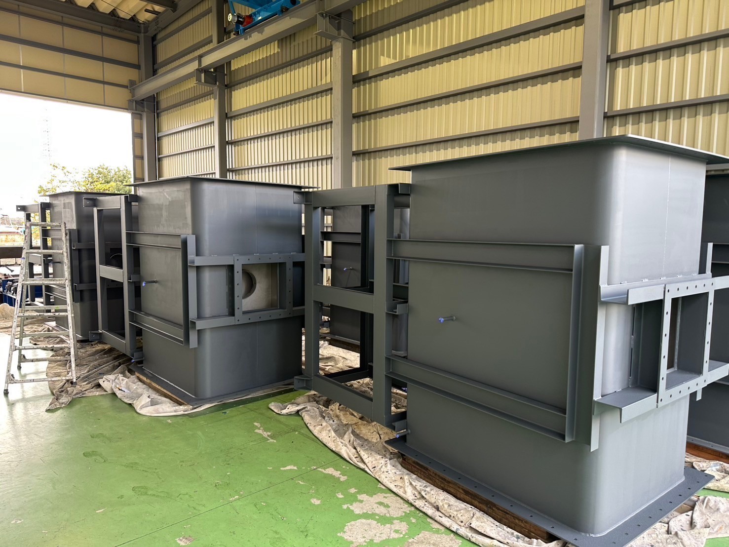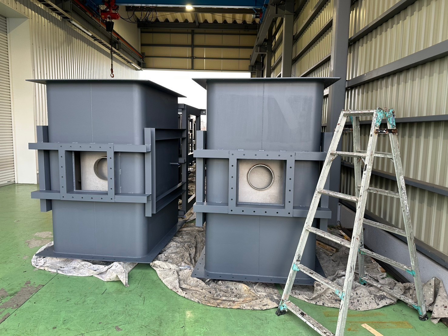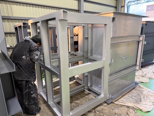 本日から追加の冷却庫の鉄油拭き取り後、錆止め塗装し耐熱塗料のシルバーも少し塗りました。工務と応援2人で朝早くから頑張って頂き昼から専務にも応援に来てもらい何とか明日5台キッチリと仕上げます。有言実行のアイホームに何でもお任せくださいね。明日も引き続き宜しくお願いします。