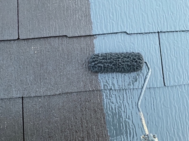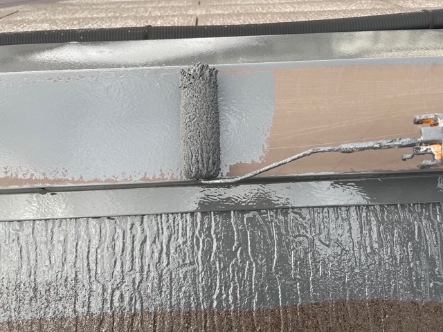 本日の作業はカラーベストに(通気工法)タスペーサーを入れて中塗り、上塗りをして屋根は完了して付帯部を塗り始めてます。明日も引き続き宜しくお願いします。またアップします。