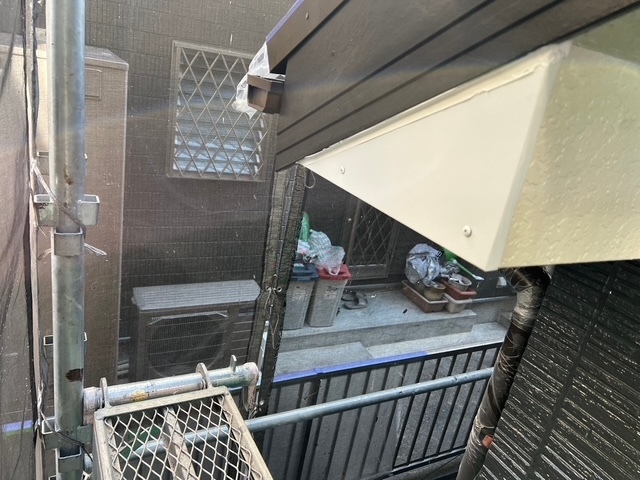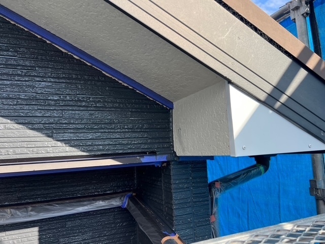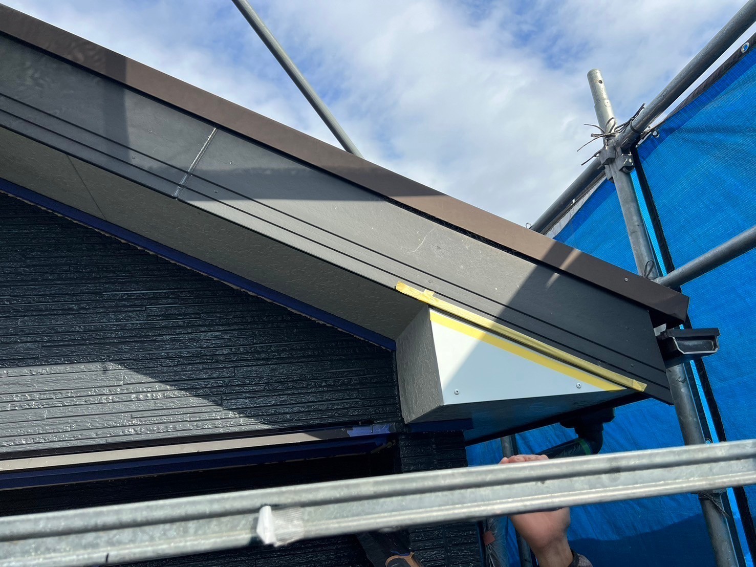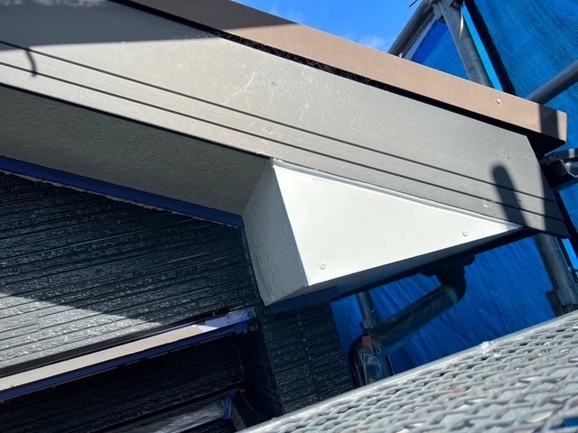 本日の作業は破風下の三角のケイカル板が上下、面になっていて雨垂れが原因でよく腐食や破損が起こりやすいので板金を加工して貼りました。これで安心ですね。引き続き宜しくお願いします。またアップします。
