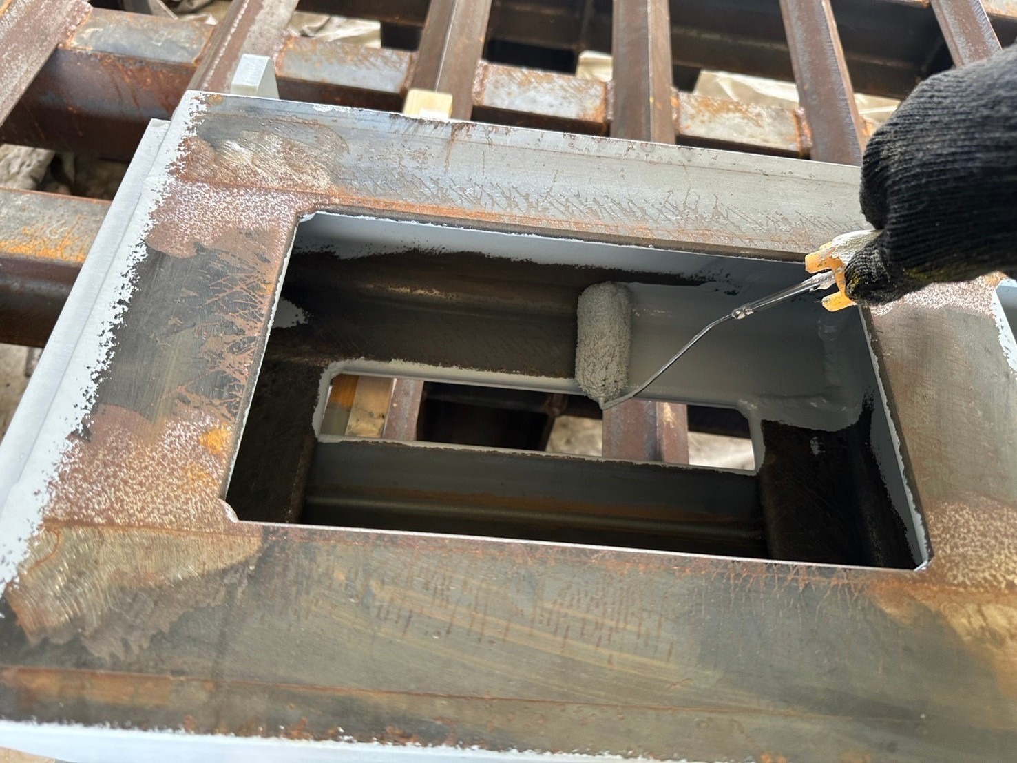 今日は残っていた板金部分の塗装を仕上げました。細かな所まで手直しさせて頂きました。タッチアップ材も準備し次は足場屋さんへバトンタッチです。また解体後の写真アップさせて頂きます。