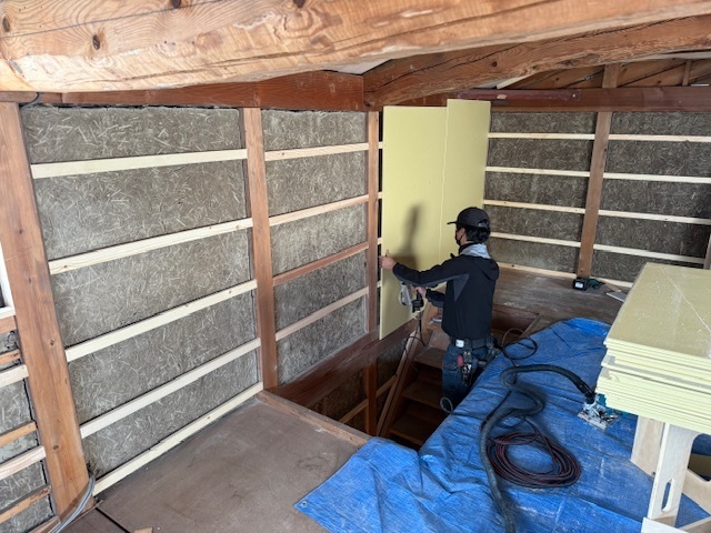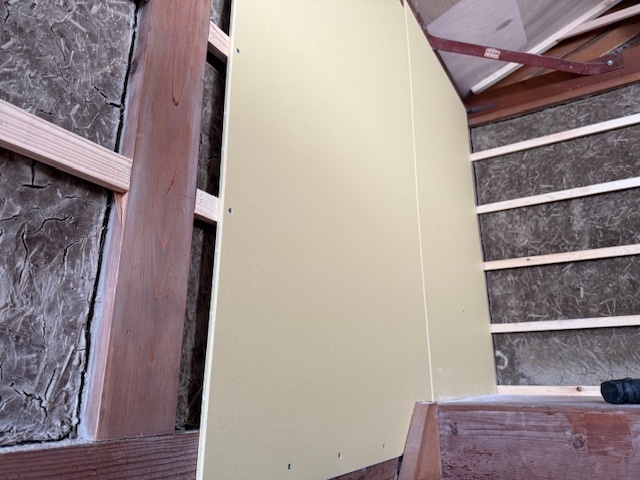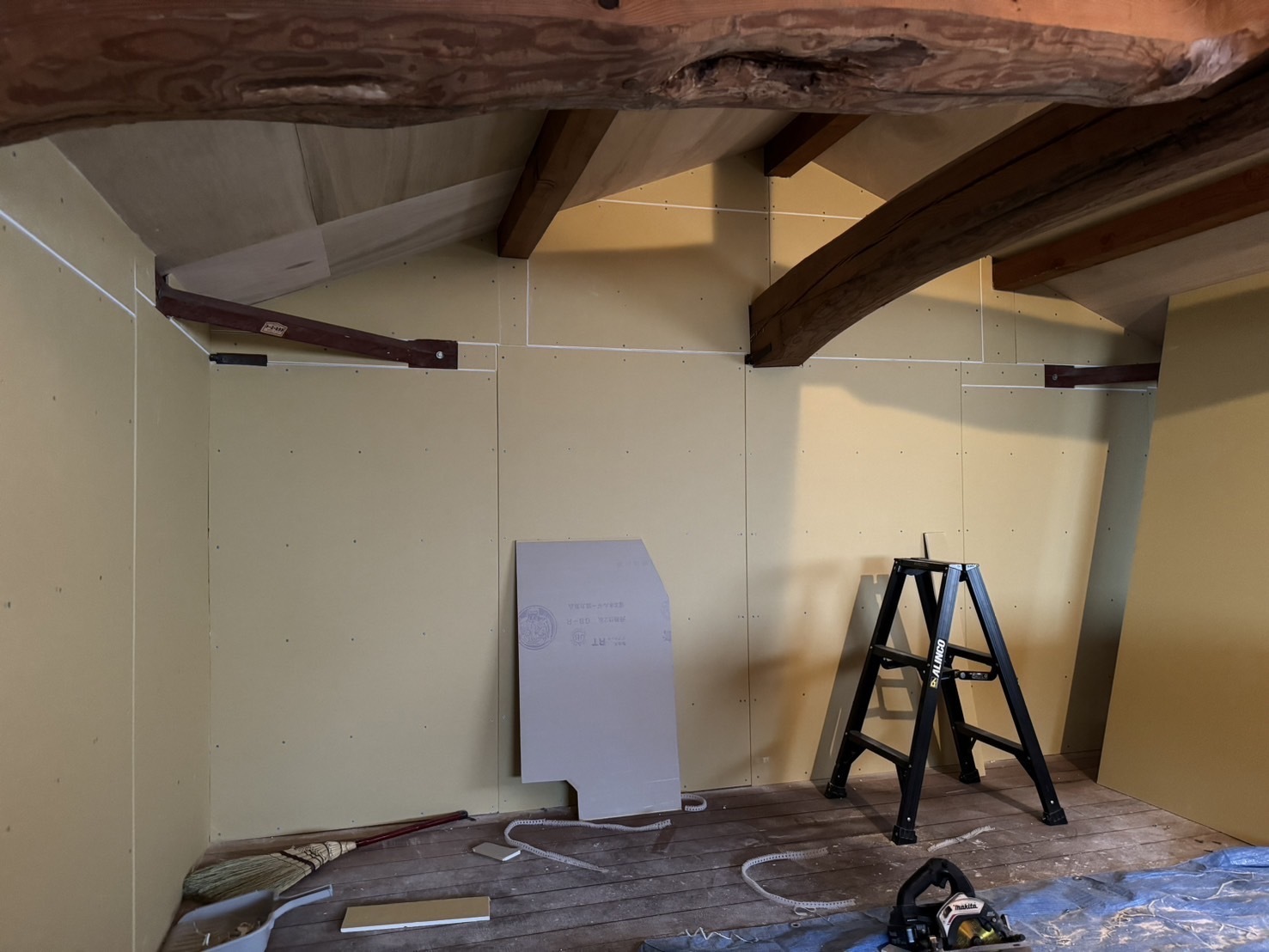 今日からボード施行していってます。このお部屋は今回物置で使用されるので今はこのボードの状態が仕上がりです。将来的に部屋などにするときは天井、壁はクロスが貼れるようにしてあります。床もクッションフロアなど張れるので用途に応じて将来部屋のデザインを変えれるようにお客様と仕上がりを相談して進めております。またアップします。