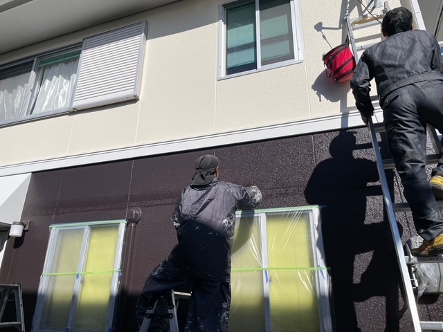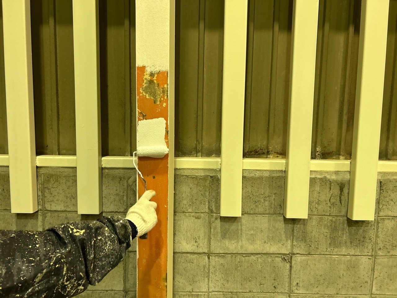 付帯部の塗装に入っております。普通の住宅と違い集合住宅は外階段や鉄骨、共用部など色々塗装箇所もあります。普段より時間もかかりますが丁寧に細かな所まで仕上げて行きます。引き続き宜しくお願いします。またアップします。