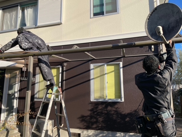 本日の作業は新しくテラスを組立てるので古いテラスを解体して柱のコンクリート根巻きも綺麗に撤去して恥かいてる外壁箇所もしっかり色合わせしてタッチアップ致しました。BSアンテナも本体を新しくして外壁に取り付けました。ついでに気になる箇所も簡単ですが修繕しておきましたよ。引き続き宜しくお願いします。またアップします。