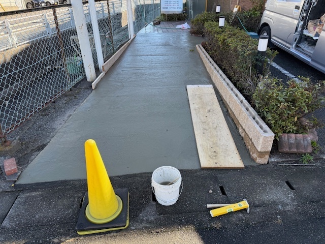 土間工事完了しました。朝から打設しましたが寒いので少し乾きも悪く仕上げに時間がかかってしまいました。あとは乾燥させたら手摺を設置して工事完了です。引き続き宜しくお願いします。またアップします。