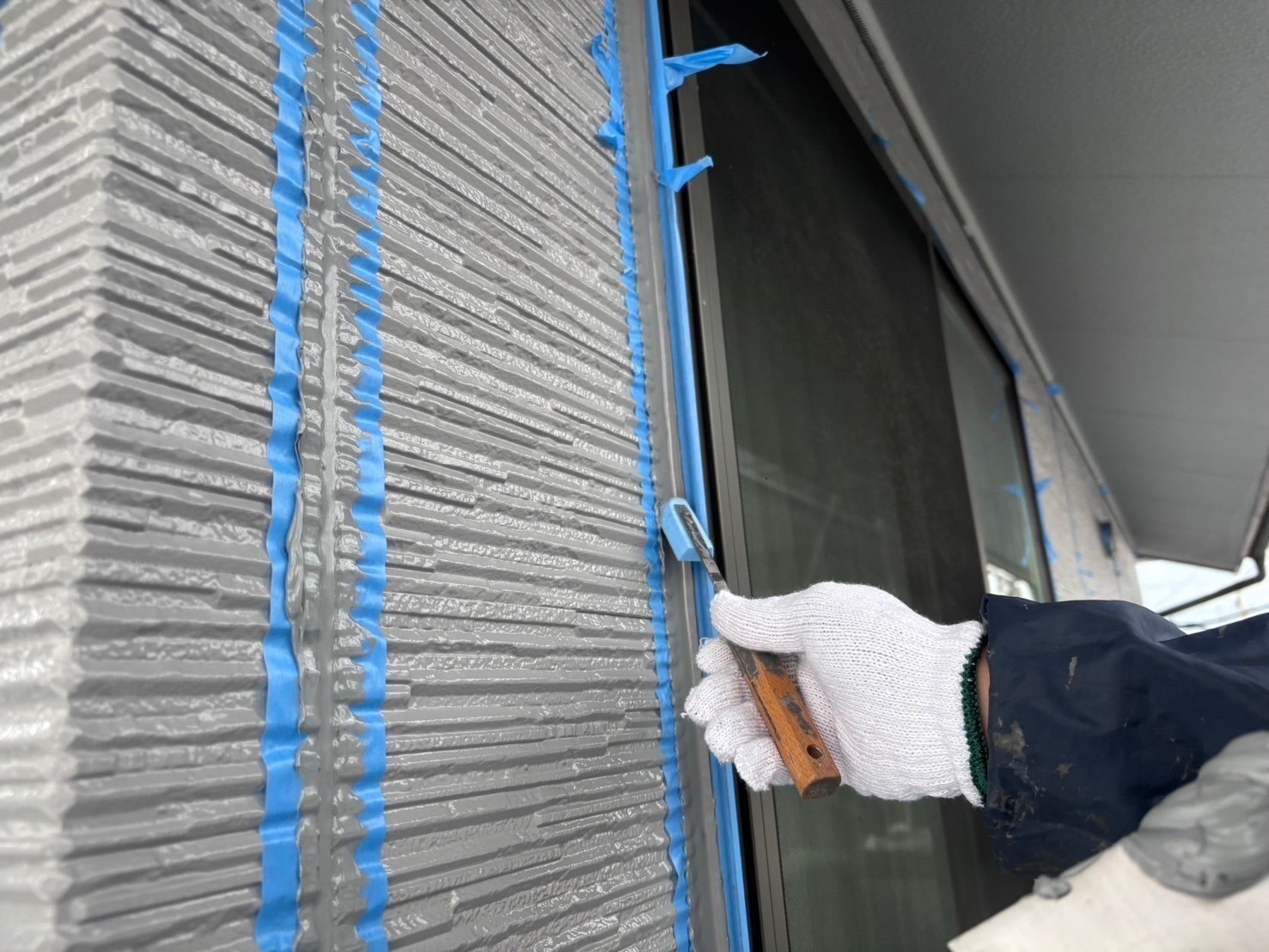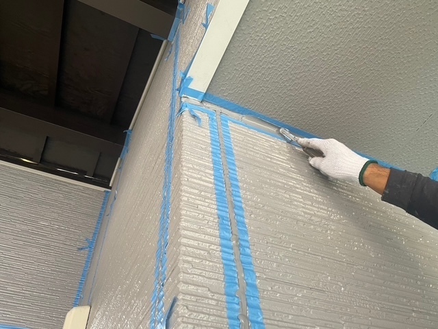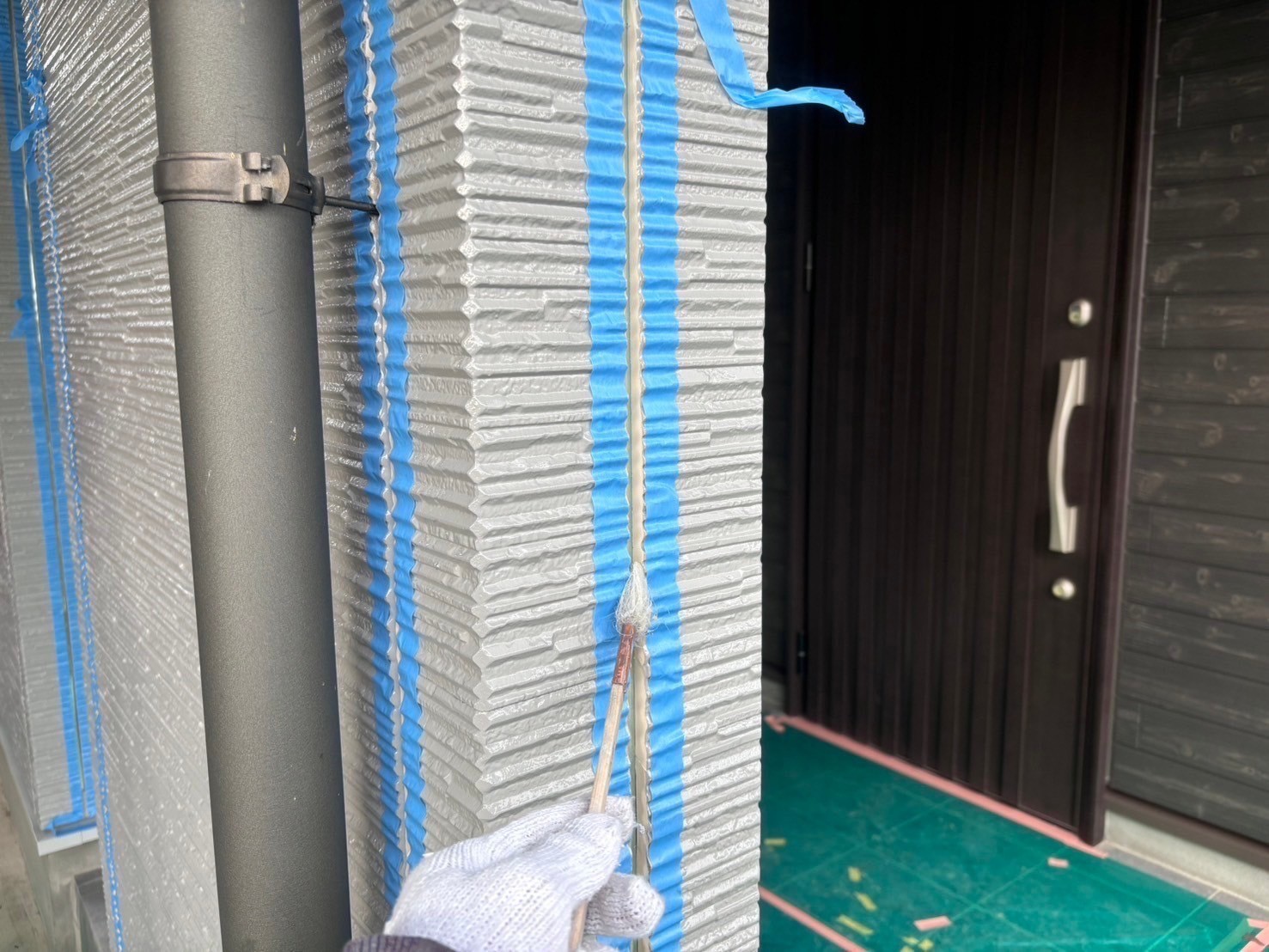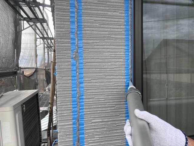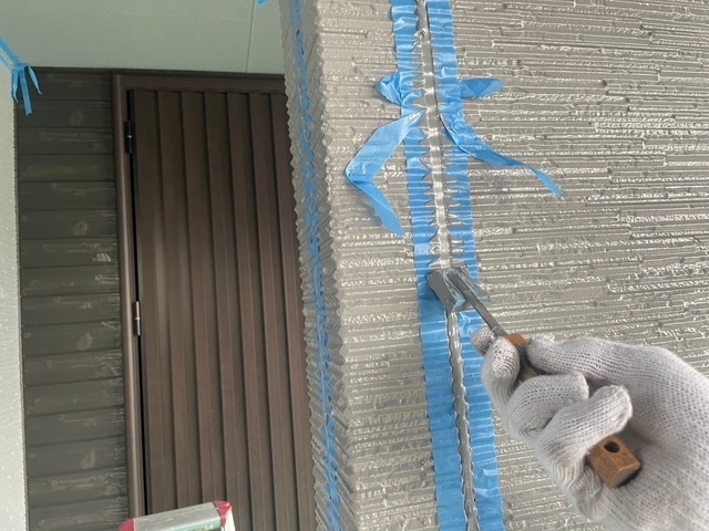 本日の作業は外壁をフッ素で塗装したのでシールの色も外壁に近い色を注文してメーカーに作ってもらい仕上げ打ちをしました。後もう少しですね^^引き続き宜しくお願いします。またアップします。