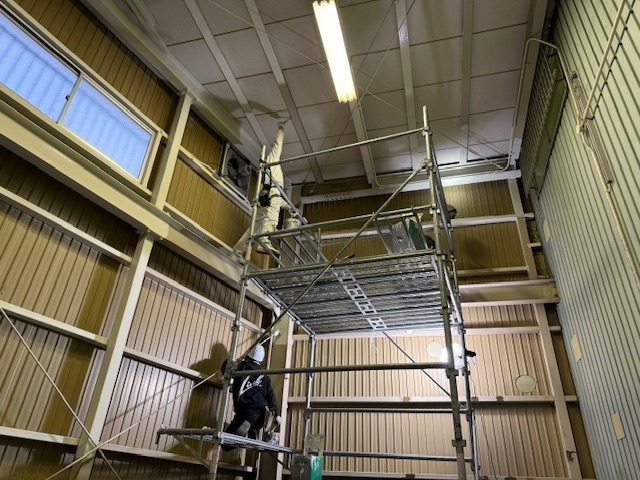 残りは細かな部分の塗装と増築部の内部鉄骨を塗装したら完了です。夜間工事と昼間の工事でフル稼働しております。内部は雨の影響がないので助かります。引き続き宜しくお願いします。またアップします。