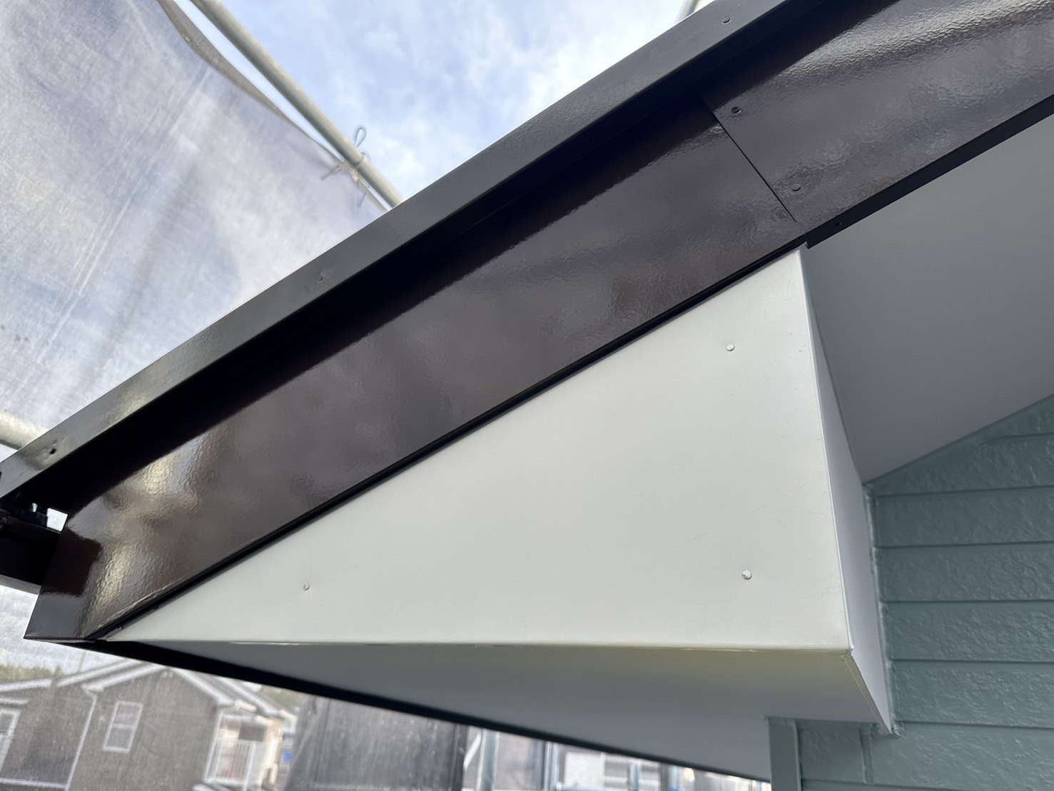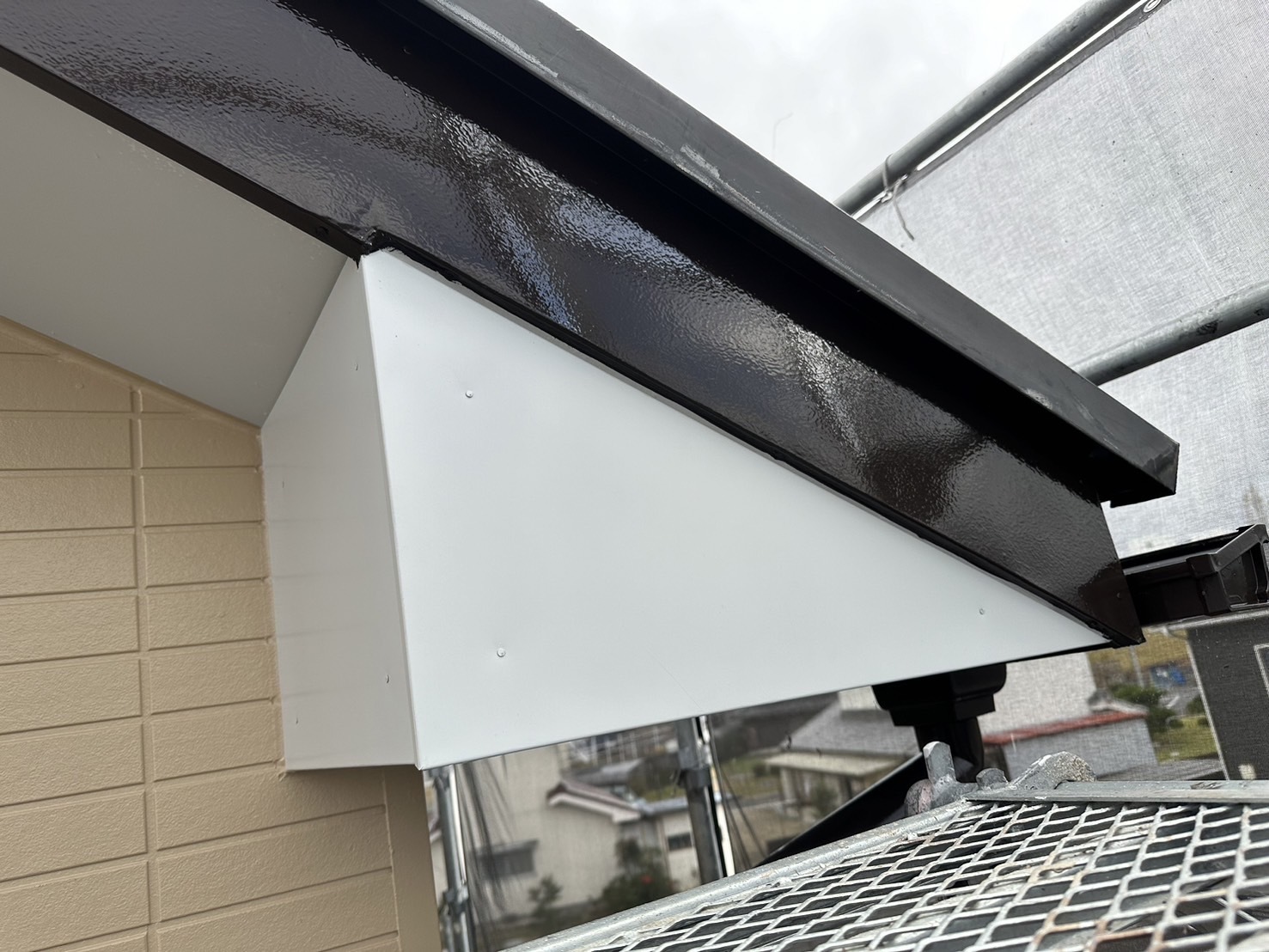 今日は破風の水下のケイカル部分をガルバで被せる工事を行いました。雨が降る前に完了しました。板金工事は後はコーキングで完成です。引き続き宜しくお願いします。またアップします。