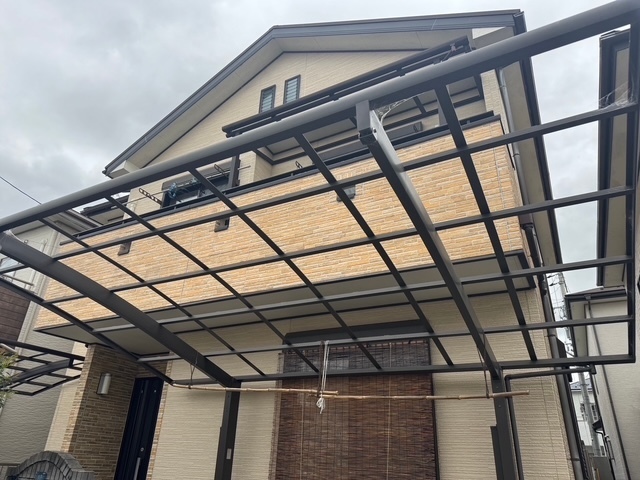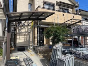 本日の作業は28日に屋根外壁塗装の足場を組立てるのに干渉するカーポートのパネルとベランダのパネルを取り外しました。引き続き宜しくお願いします。またアップします。