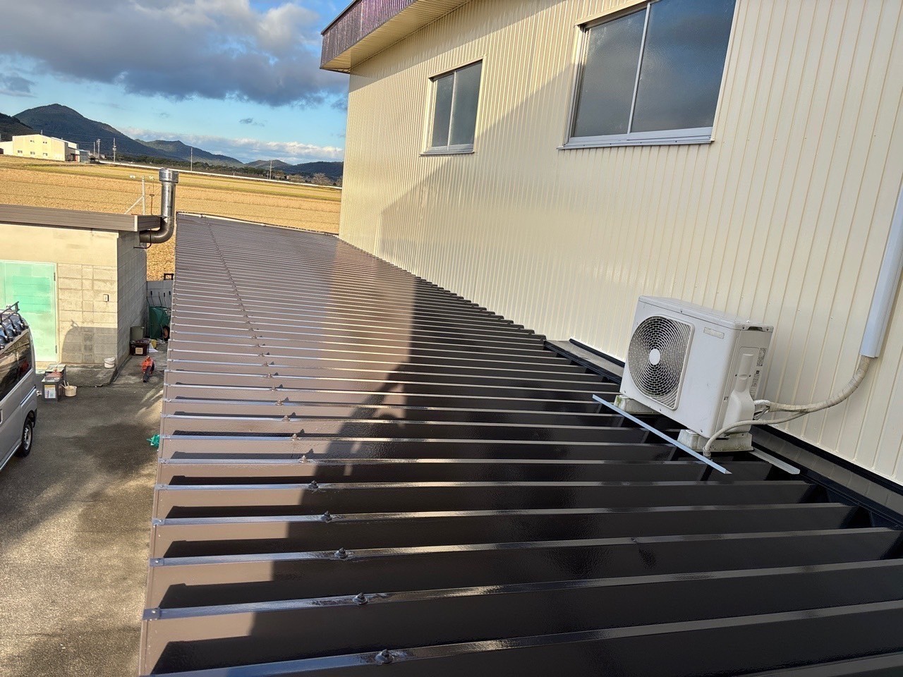 本日の作業は足場解体してから折板屋根と鉄骨、水切り板金の塗装工事を致しました。全て工事完了しました。綺麗になりましたね。ありがとうございました。また後日の外壁周りの掃除に行きますね。引き続き宜しくお願いします。