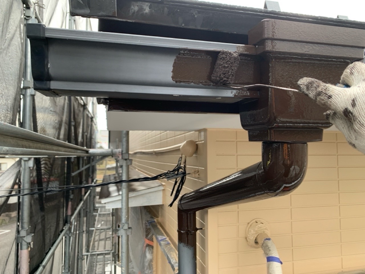 雨樋の交換工事を実施しました。カーポートと干渉して作業がやりにくい箇所がありましたがコンパネで養生して上手く現場進めてくれました。また動物の進入路も板金で穴を塞ぎました。明日からはコーキング工事です。引き続き宜しくお願いします。またアップします。