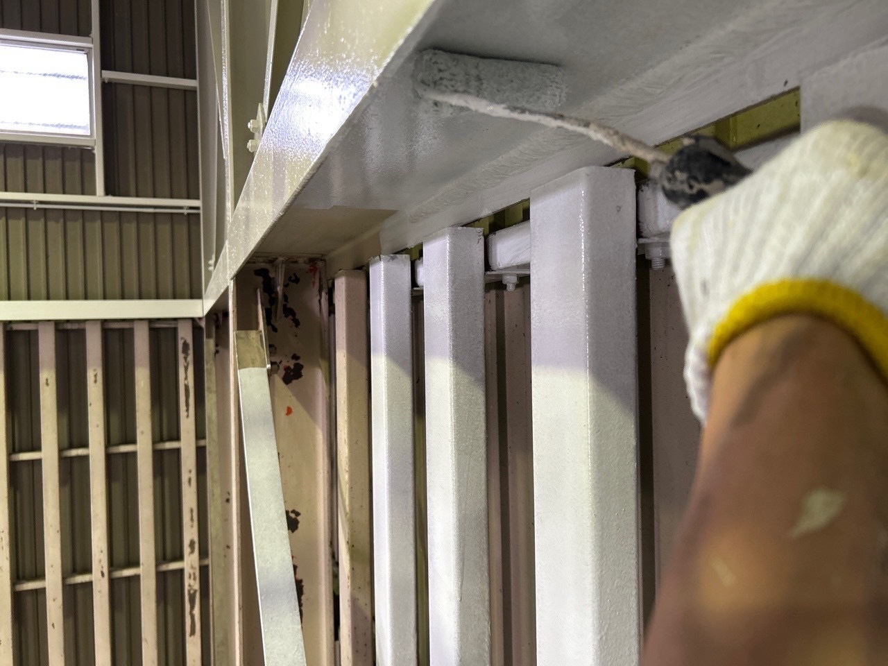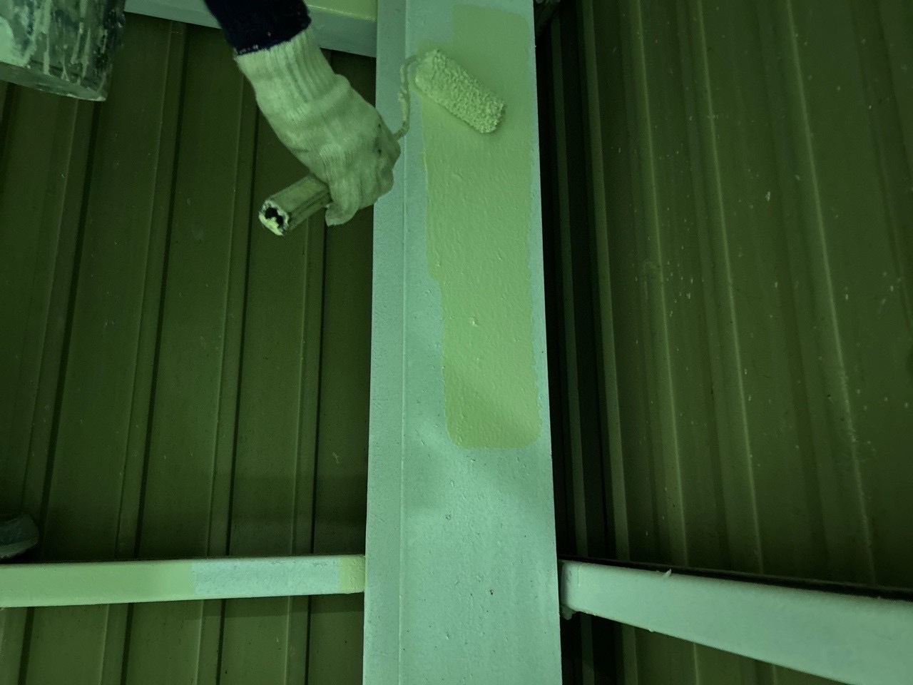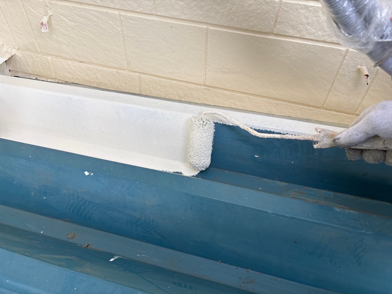 本日の作業は折板屋根のケレン、錆止め塗装とパラペットの上塗り作業を致しました。引き続き宜しくお願いします。またアップします。