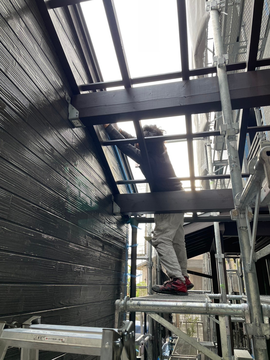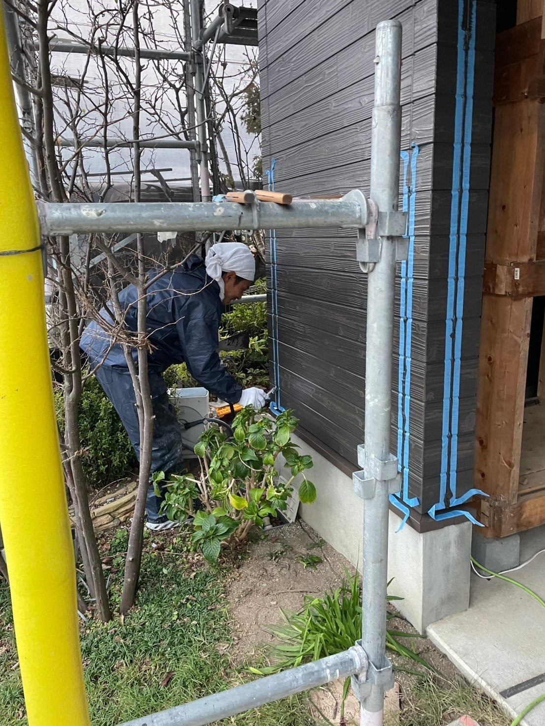 外壁塗装が完成したので今日から外壁色に調色したオートンイクシードで仕上げ打ち作業をしていきます。明日も引き続き宜しくお願いします。またアップします。