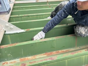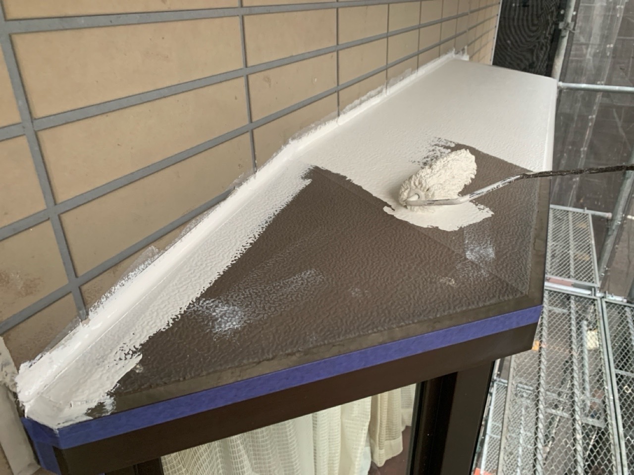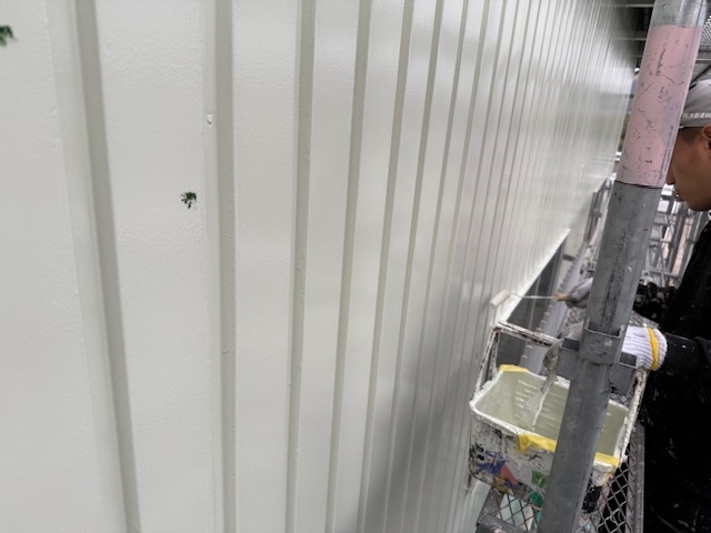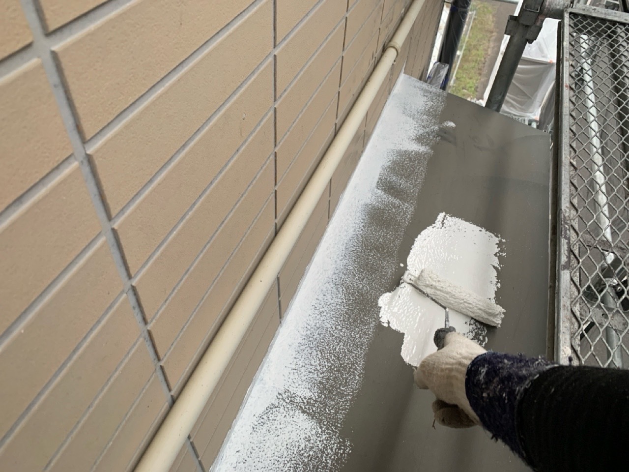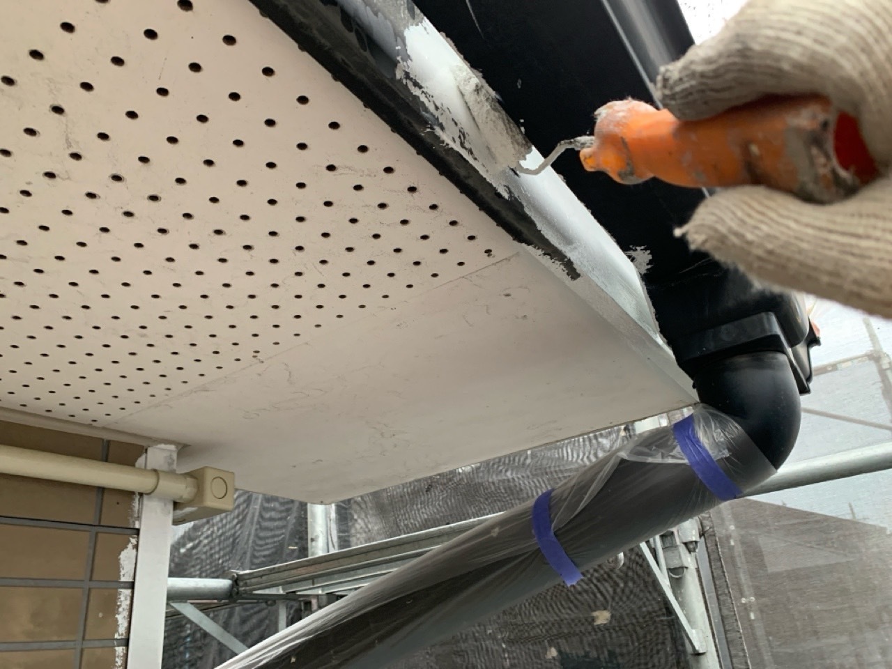 A棟B棟ともに順調に進んでおります。本日の作業は軒天や板金部分の錆止めを主体に行いました。塩ビ巻きになっている箇所はビニタイトプライマーも塗布しております。引き続き宜しくお願いします。またアップします。
