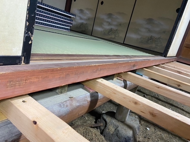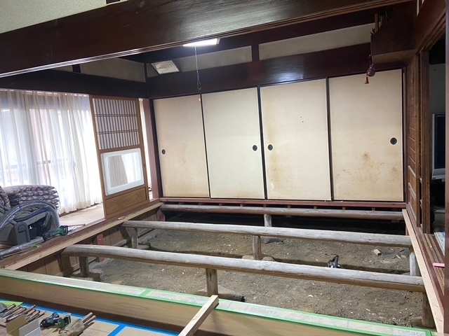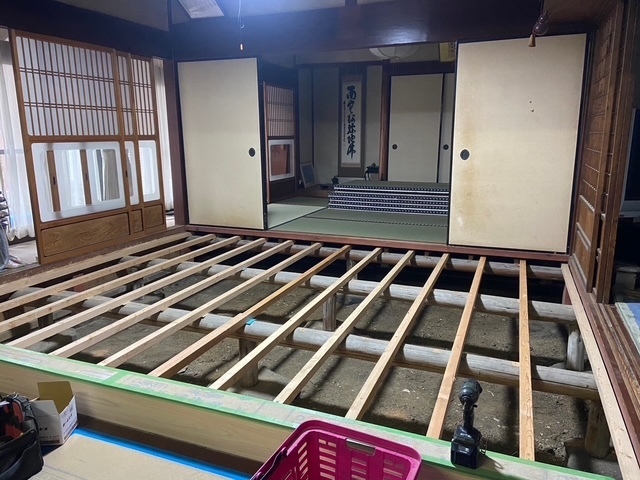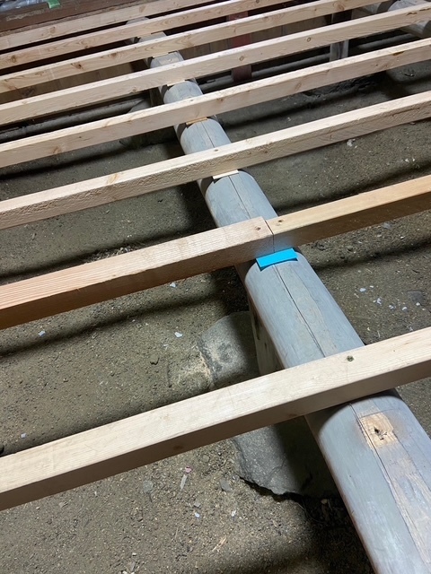 本日の作業は床部の敷居調整、大引き調整、根太調整を行いました。引き続き宜しくお願いします。またアップします。
