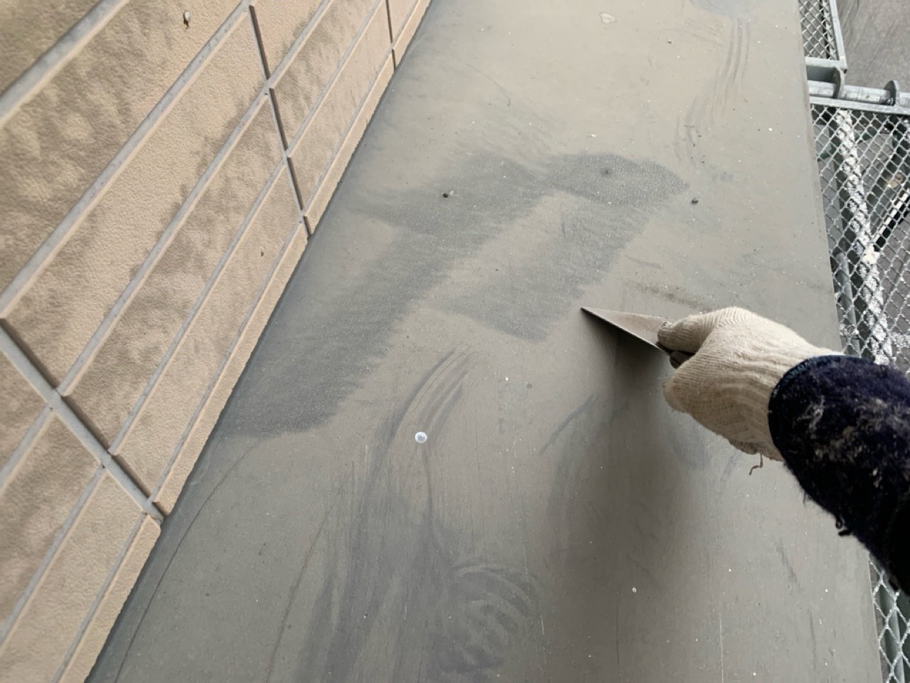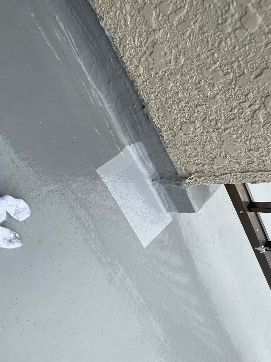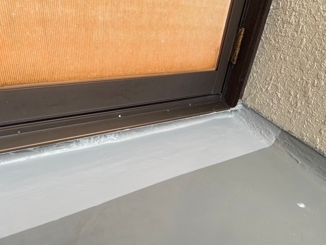 防水工事の部分補修完了です。物干しの重みなどで穴が開いてしまったので部分で補修しました。早く気付かれたので問題なく施工できましたが放っておくと漏水も起こりうる原因ですので早めの施工で良かったです。Fさま大変お世話になり、ありがとうございました。