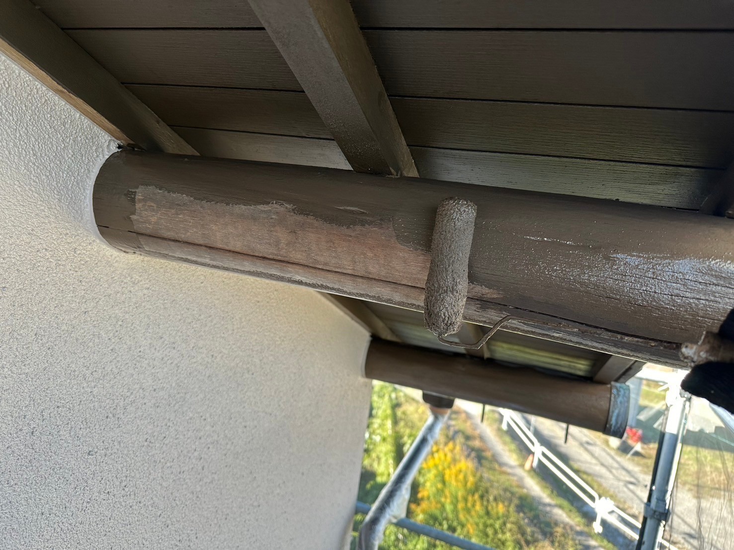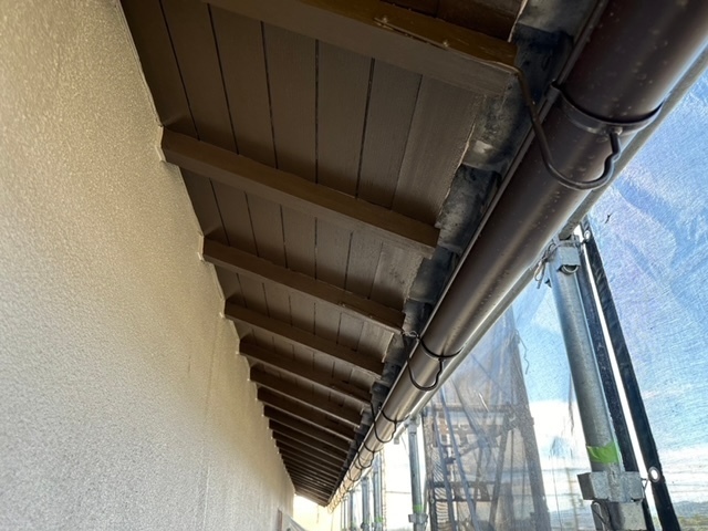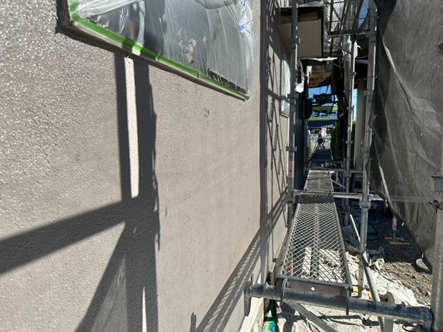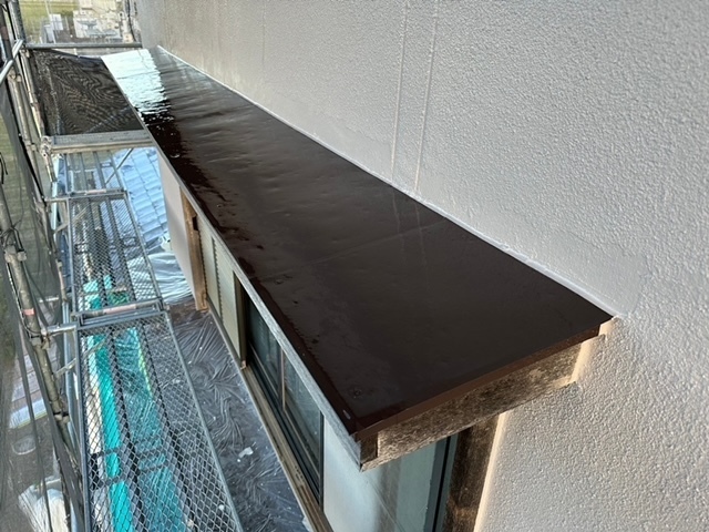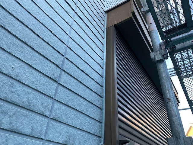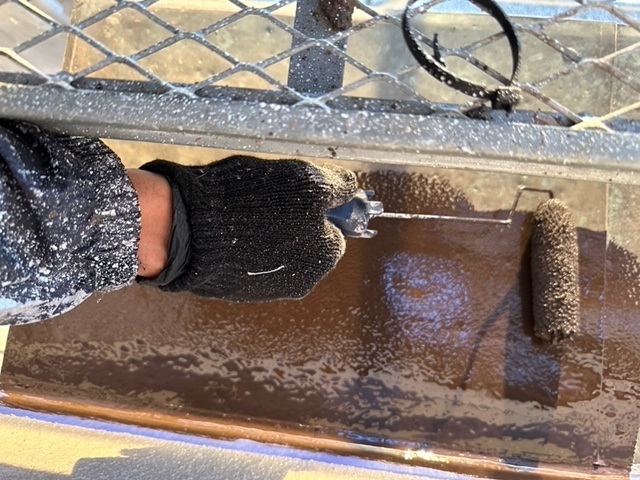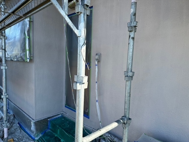 本日の作業は外壁上塗り他付帯部を塗っています。