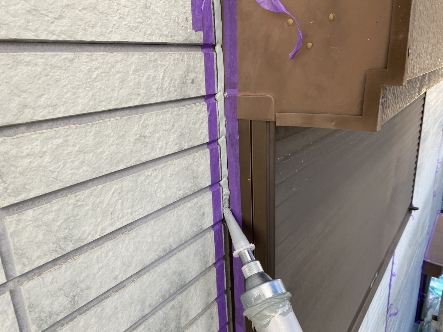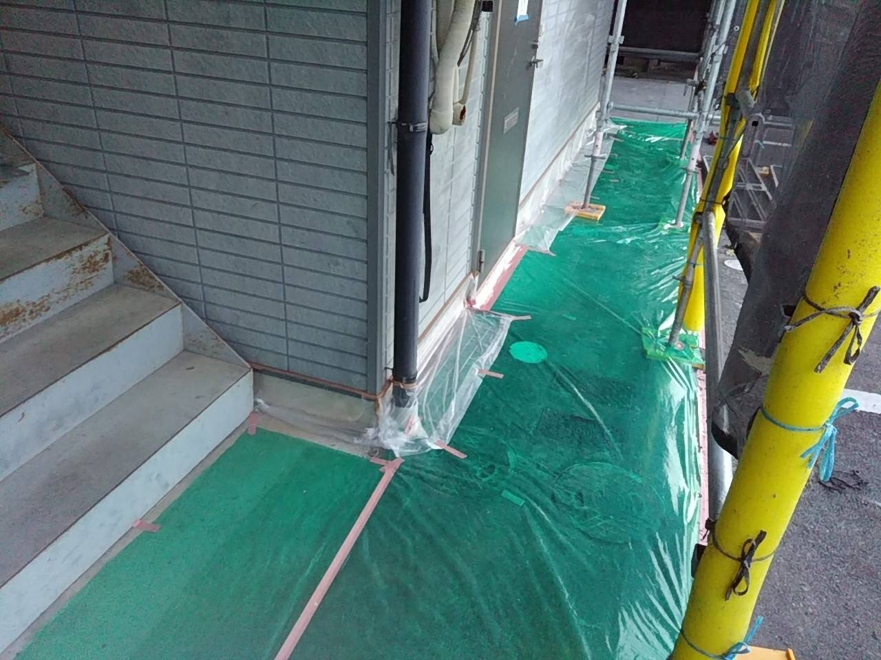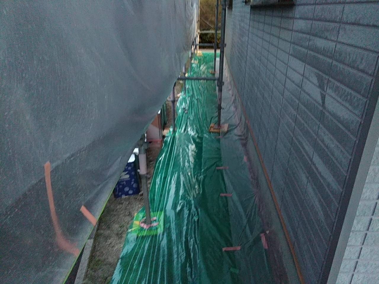コーキング工事4日目です。月曜日には完成予定です。こちらも同時進行で塗装班が足元の養生作業など進めております。月曜日からは屋根の塗装に入って行きます。引き続き宜しくお願いします。またアップします。