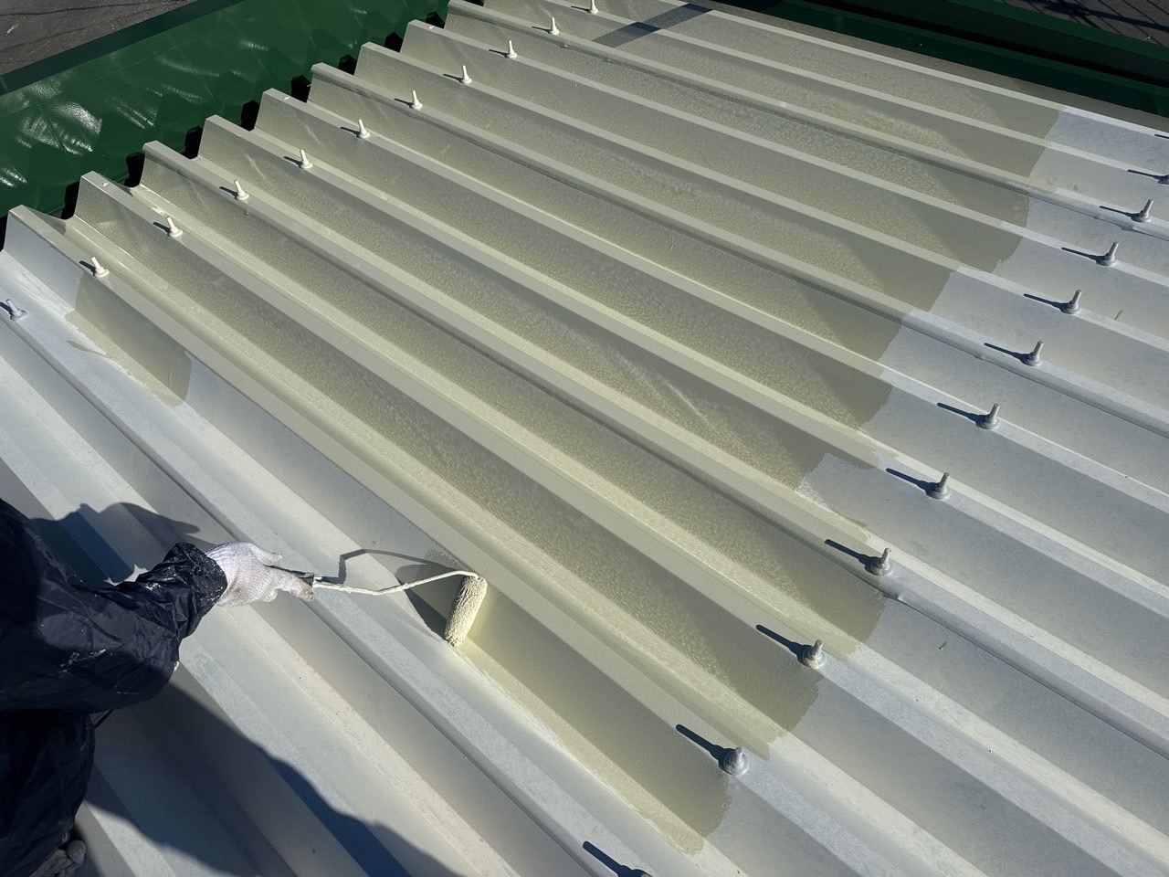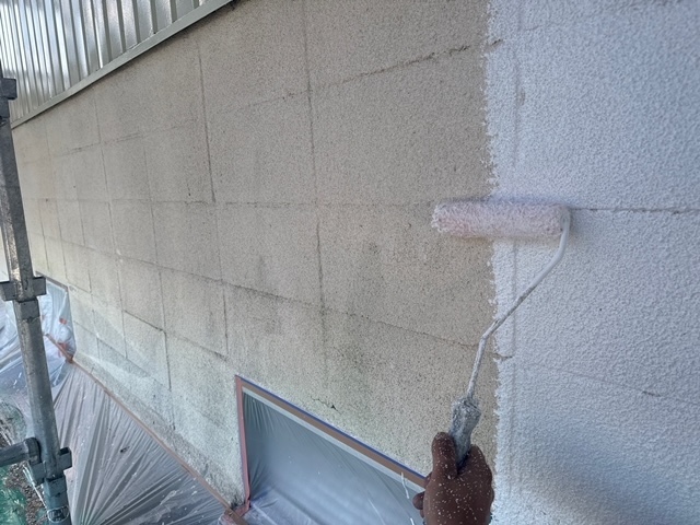 シール工事が先行で終わったA棟はコーキング乾燥の間に先に屋根から塗装工事スタートしております。引き続き宜しくお願いします。またアップします。