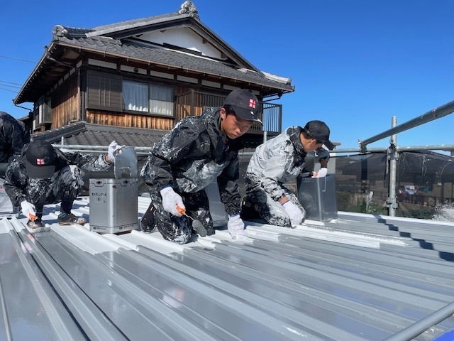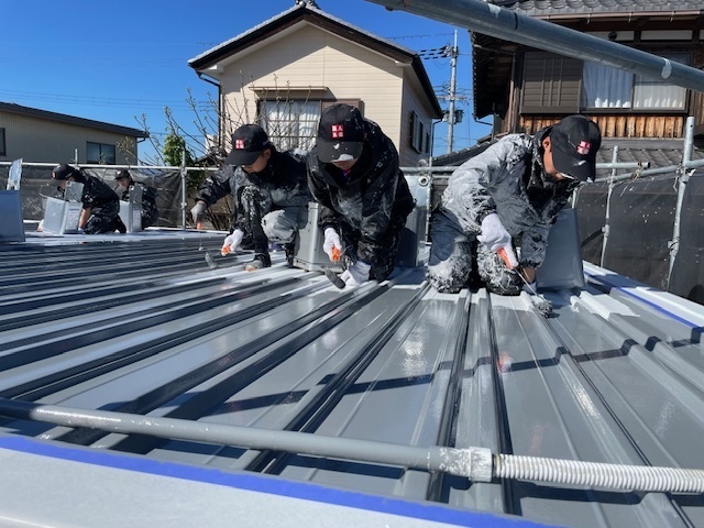 本日の作業は雨戸上塗り、屋根上塗り、外壁の上塗り作業を致しました。引き続き宜しくお願いします。またアップします。