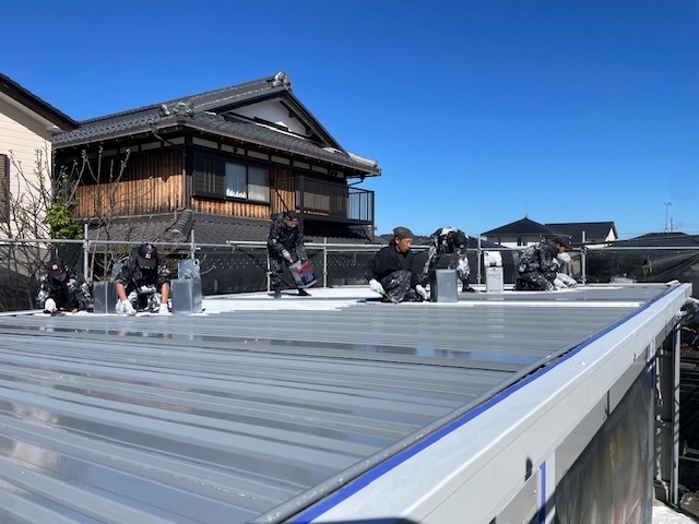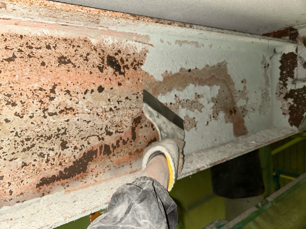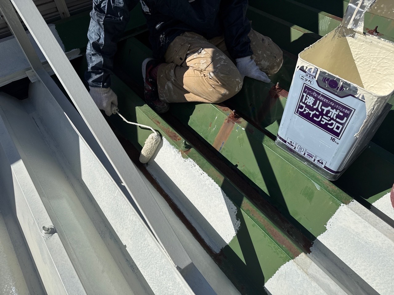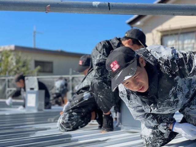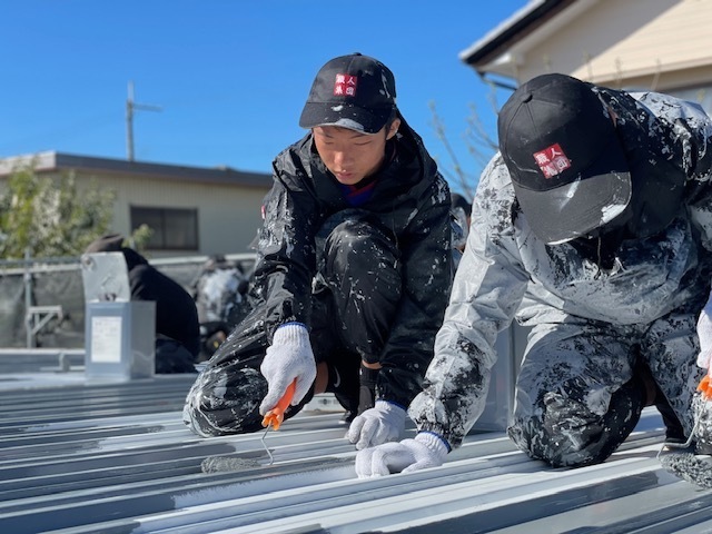 今日も順調に作業進みました。内部は夜間工事でケレン作業を行いました。外部は昼間に正面下屋根やブロックの塗装など行いました。引き続き宜しくお願いします。またアップします。