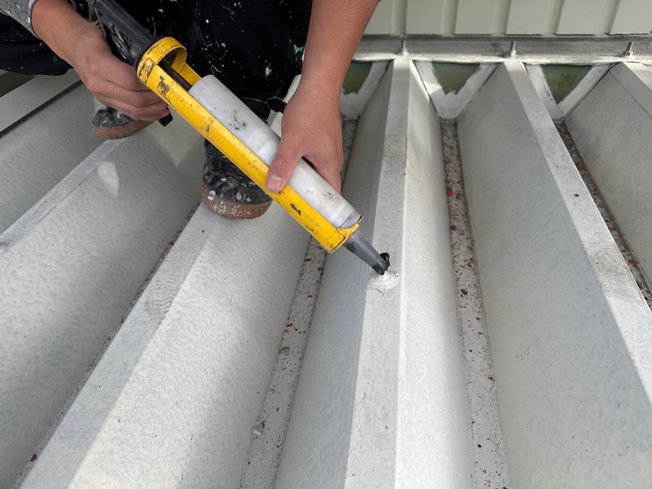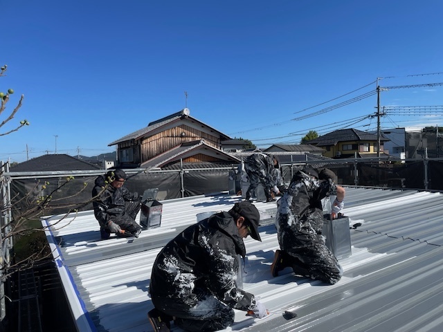 今日もコーキング工事進めております。明日も引き続き工事します。同時の屋根の塗装も進めております。またアップします。