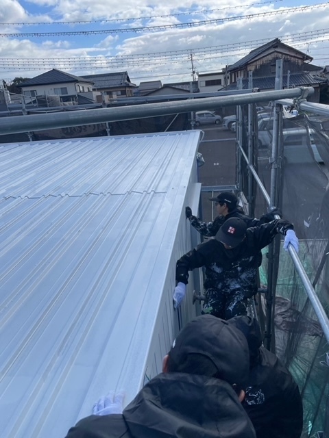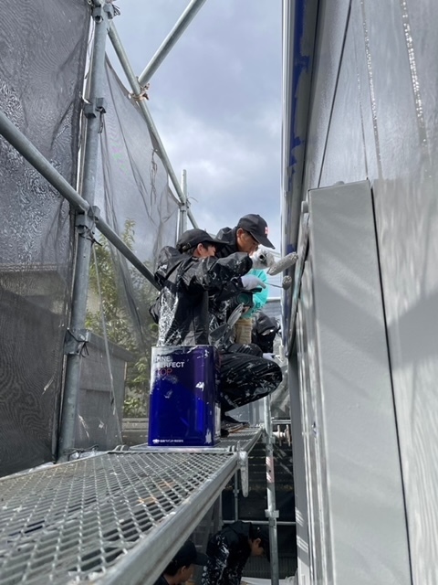 本日も笠木板金とシール工事の昨日の残りの作業を引き続きして全て完了しました。足場解体後のプリントを張った外壁を見るのが楽しみですね。引き続き宜しくお願いします。またアップします。