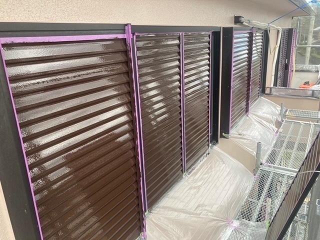 本日の作業は雨戸の1回目塗り作業を致しました。どんどん綺麗になってきましたね。引き続き宜しくお願いします。またアップします。