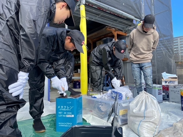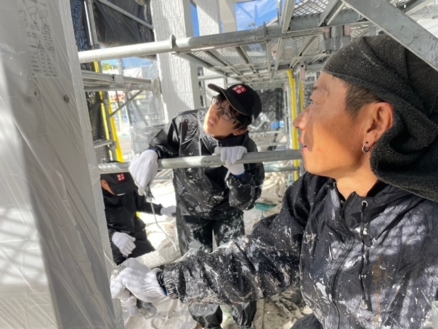 今日も引き続きコーキング作業です。明日からは塗装班も合流して屋根から塗装作業していこうと思います。引き続き宜しくお願いします。またアップします。