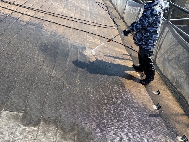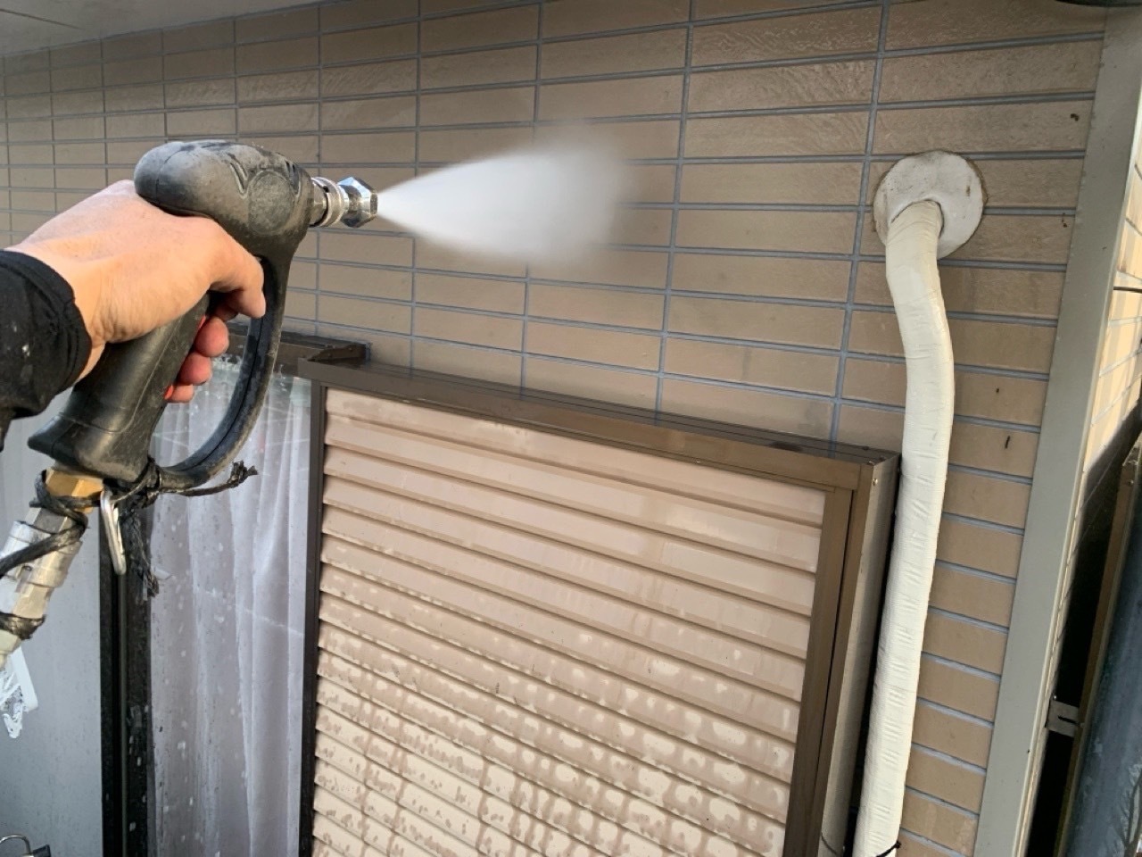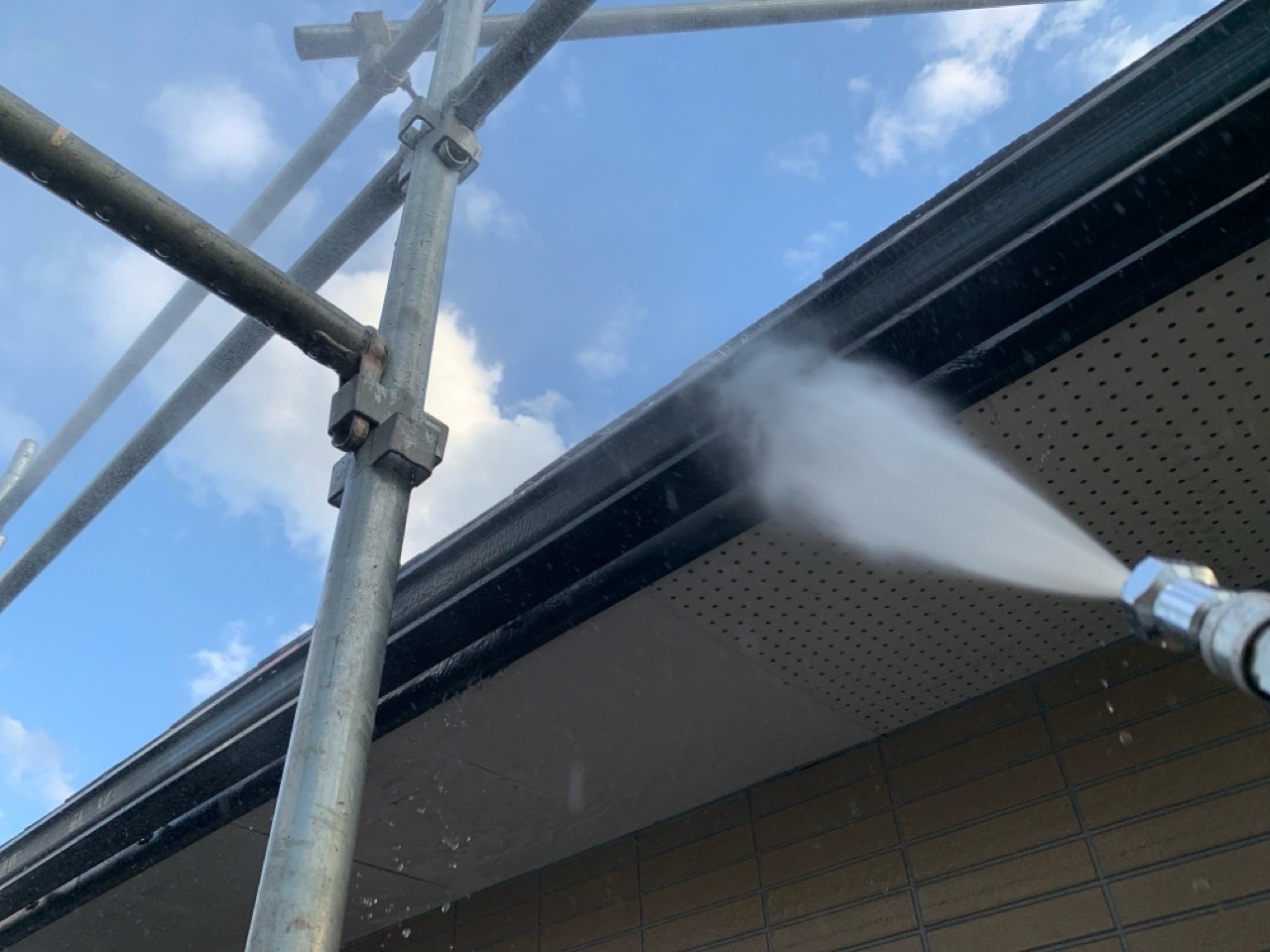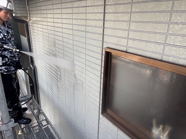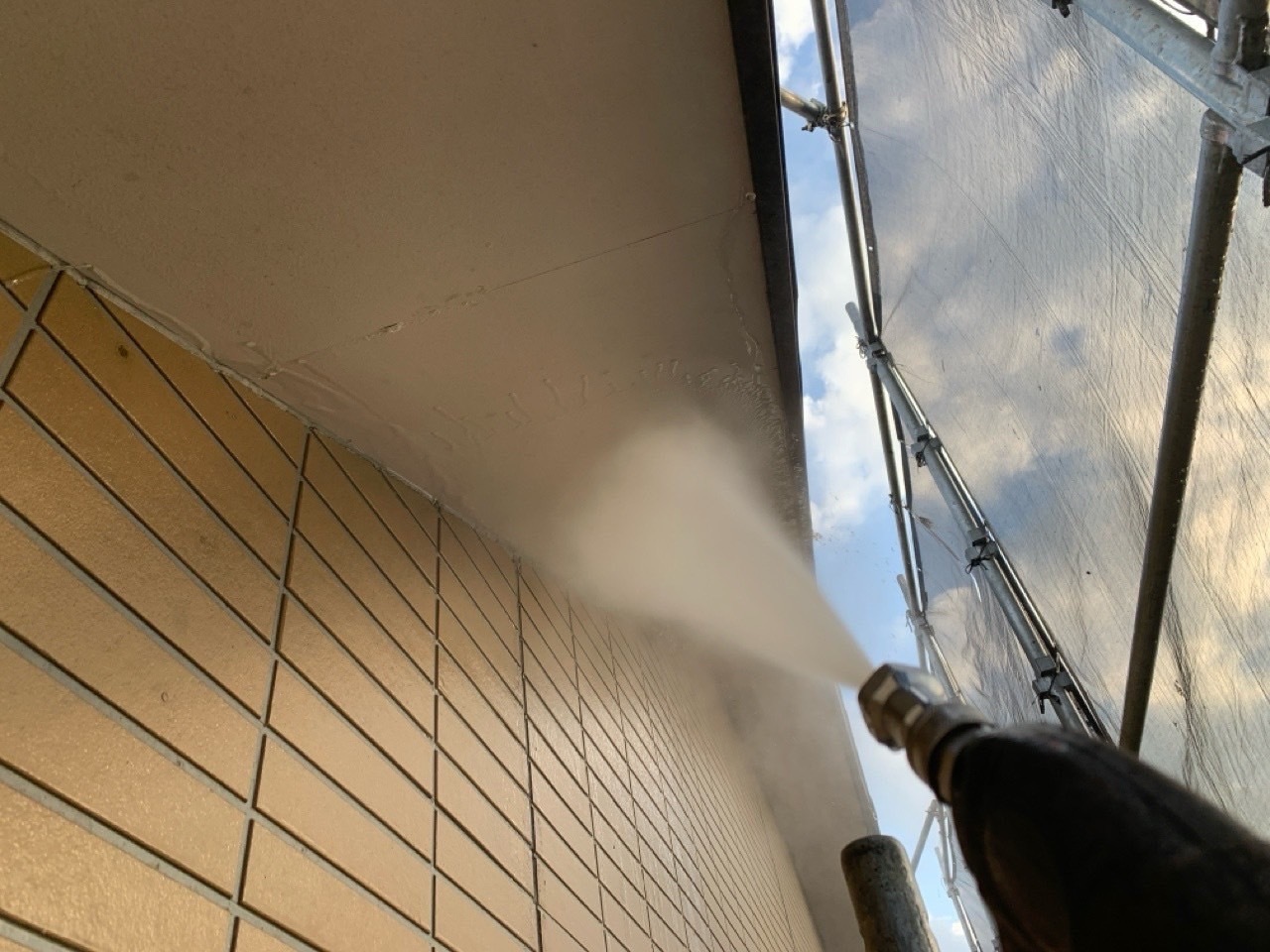 高圧洗浄の様子です。2棟同時で洗浄しました。水道が一箇所しかなく水量不足で苦戦しましたが工夫しながら少し遅い時間になりましたが何とか洗浄完了し明日からのコーキング班にバトンタッチです。引き続き宜しくお願いします。またアップします。