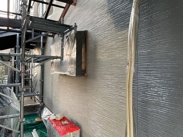 天気も良く外部もどんどん進んできました。外壁の塗装と雨樋の塗装の様子です。引き続き宜しくお願いします。またアップします。