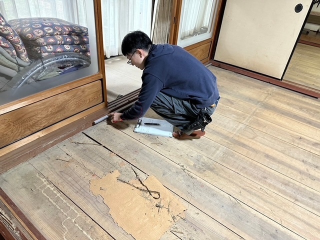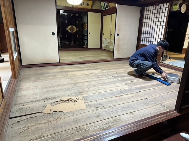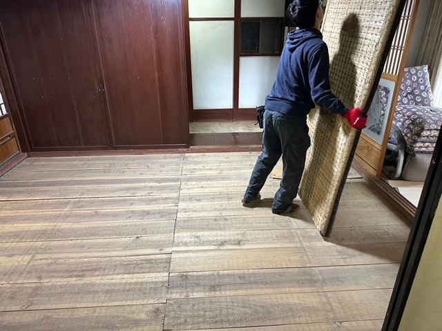 今日は畳の新調をするのに撤去してレーザーでしっかりと寸法を取り作ります。床下工事、大工工事もしていくのでまたアップします。引き続き宜しくお願いします。