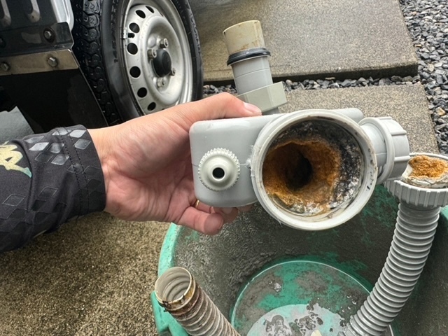 今日は塗装工事を頂いているお客さんが旧に排水管が詰まり水が流れないのでお困りの連絡がきたので駆けつけましたよ^^排水トラップの排水ホースを分解して中に蓄積された油汚れを取り除きグリストラップからキッチンまでの配管を高圧洗浄しました。お客様大喜びでしたね^^ありがとうございました。